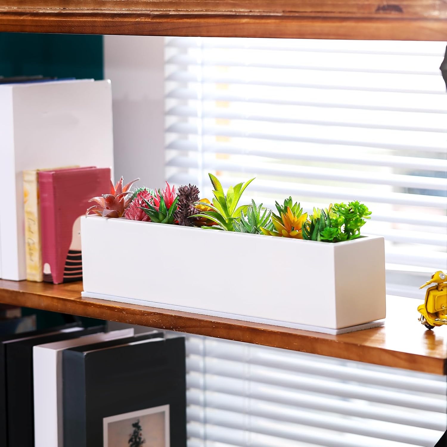 - Versatility: this rectangle plant pot can be applied as a large succulent planter indoors or as a pretty centerpiece on your table; Can be placed on the kitchen, balcony, bathroom windowsill, living room under the TV; It is a narrow flower box, can be easily placed on a bookshelf or table; You can grow cacti, succulents, flowers and other small houseplants, this long rectangular pot can also be applied to hold candles or other flower arrangements, good for your indoor or outdoor design needs