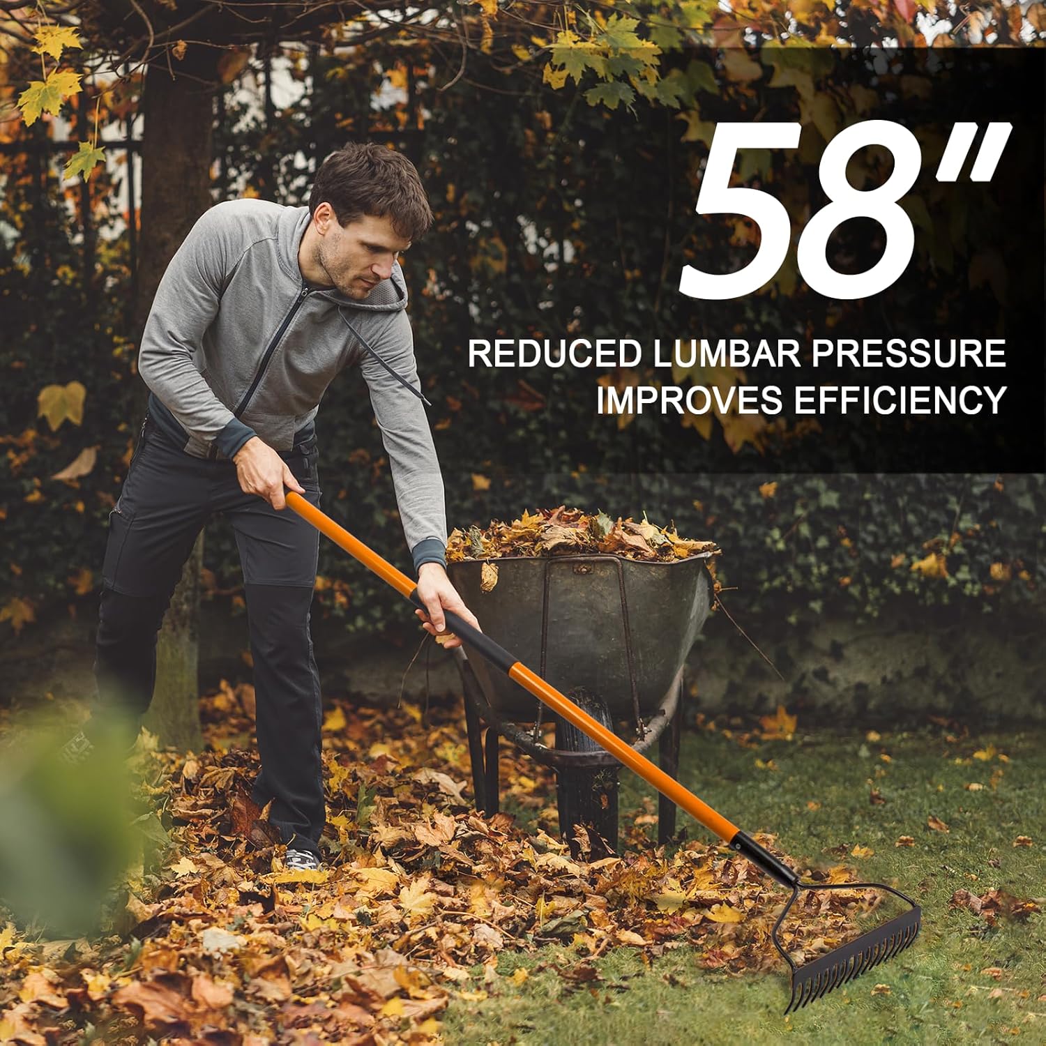 - Dimension: The 58 inches total length of the heavy duty metal rake is more suitable for adult use, and the right size reduces the pressure on the waist during use, and also improves the efficiency of long-term use.