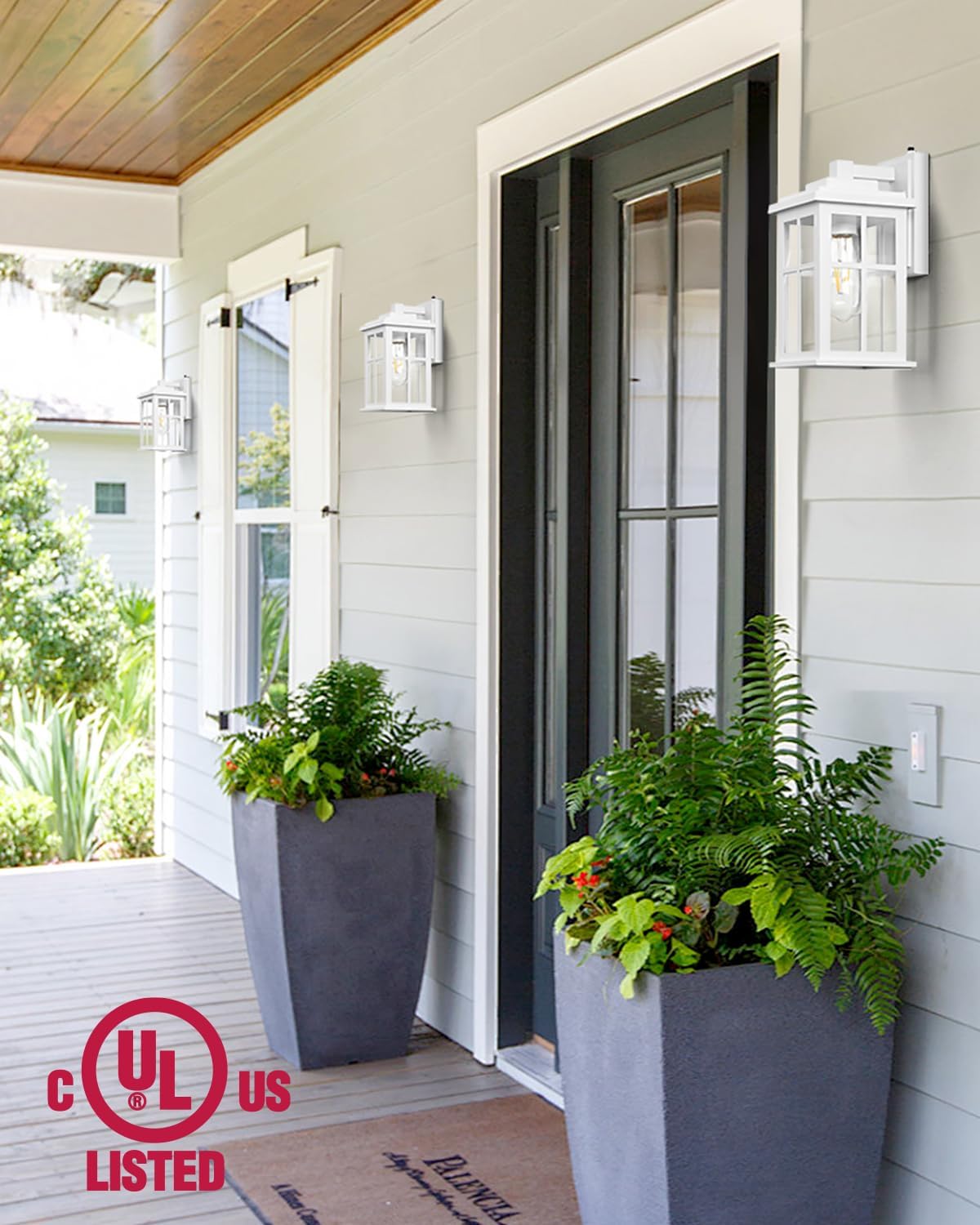 - đăHigh-Quality Construction & Tempered GlassăOur outside lights for house feature a sturdy die-cast Aluminum frame with a white matte finish, ensuring superior craftsmanship. These waterproof, anti-rustic, and weather-resistant wall sconces are built to last. Unlike fragile glass panels, our outdoor wall lights for house are equipped with high-tempered seeded bubble glass that is strong and durable. The seeded bubble glass enhances the light, creating a warm and inviting atmosphere in your house.