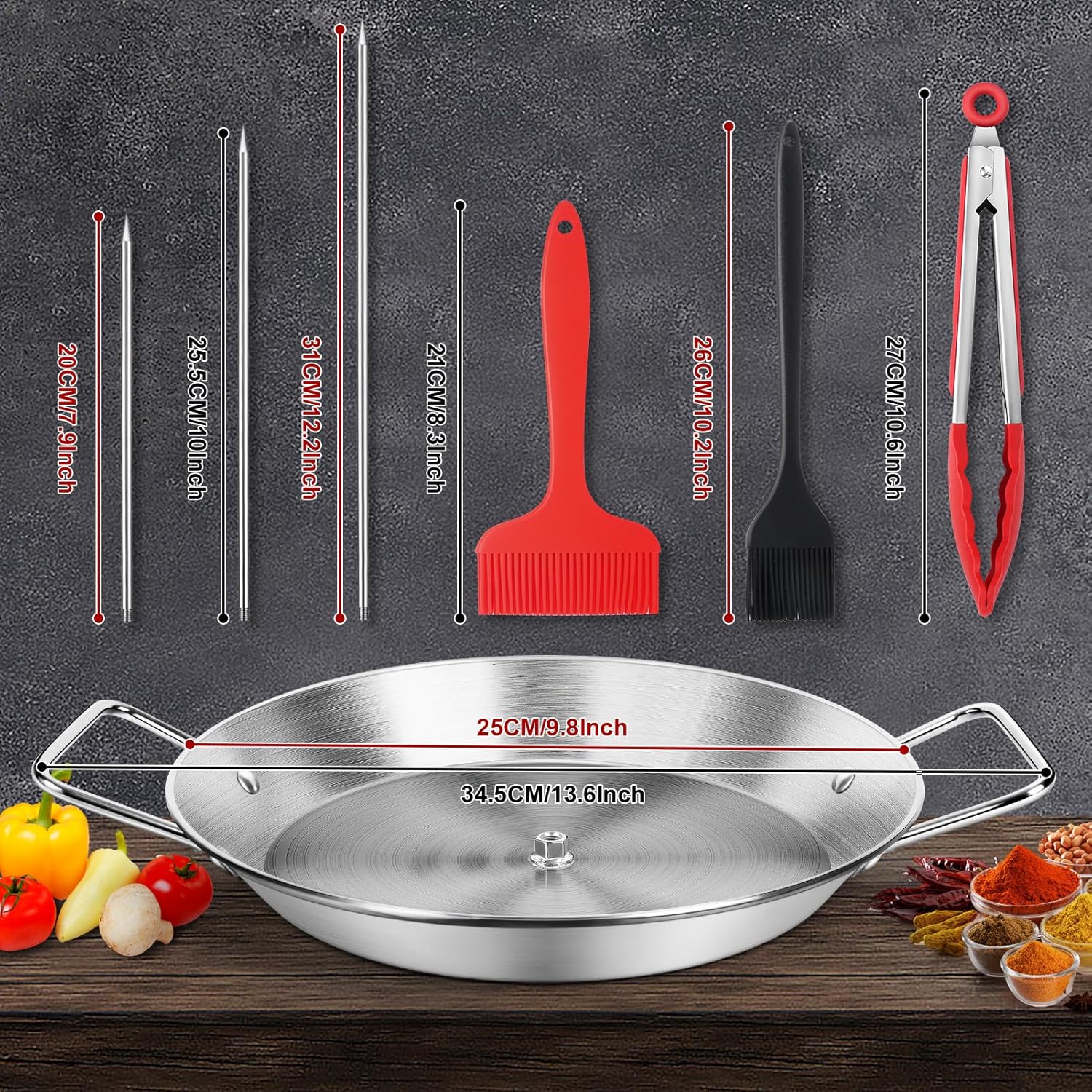 - PRODUCT COMPOSITION: Our grill pan includes 3 grill spikes (8", 10", 12"), 2 grease brushes (8", 10"), and 1 Pcs grill tongs(10") for easy cooking. Easy to assemble and disassemble, with an ergonomic handle for comfortable grip. The compact design allows wall mounting or storage, saving space