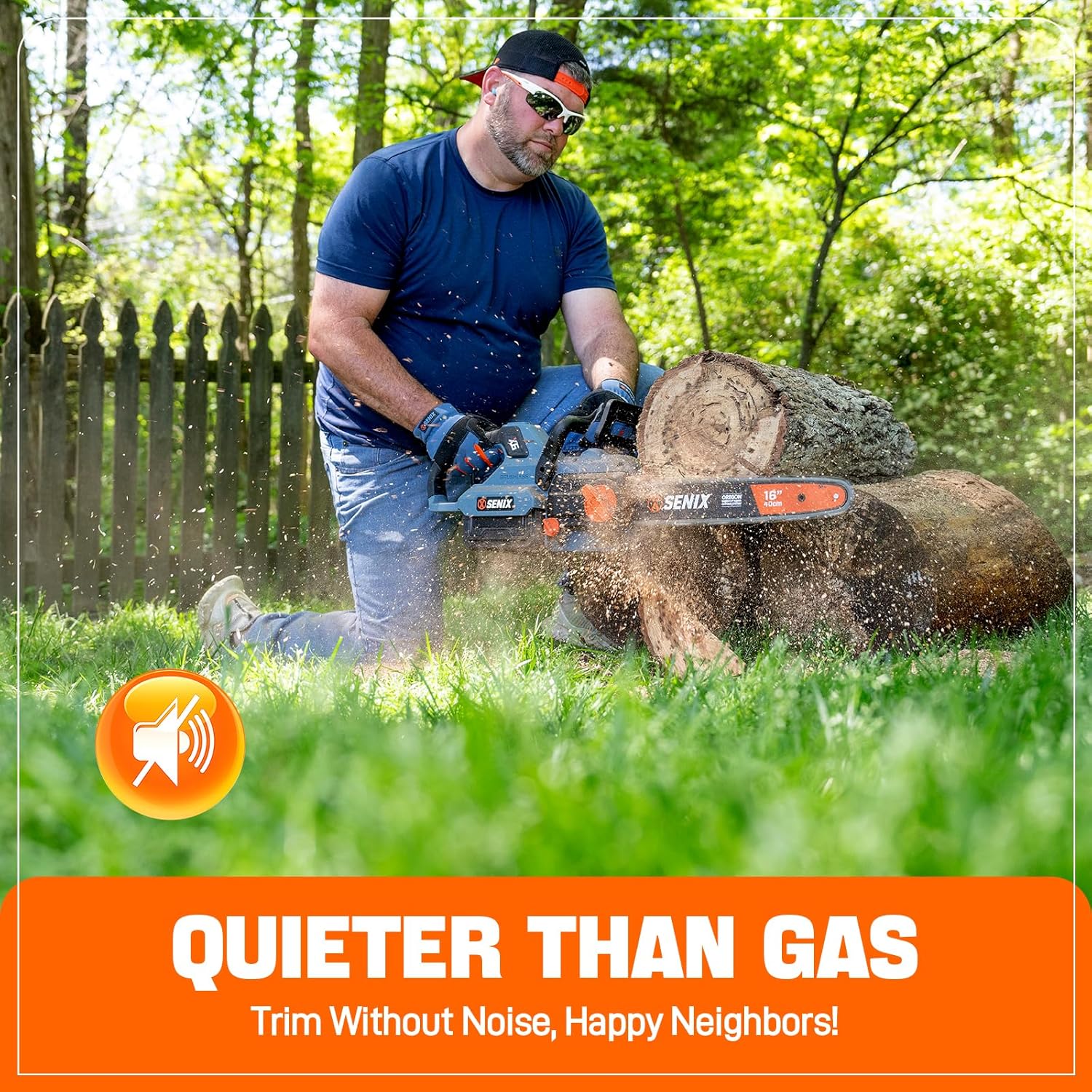 - PREMIUM SENIX BATTERY POWERED CHAINSAW: Experience gas-like performance with this cordless chainsaw with battery and charger. The SENIX 60V battery powered chainsaw features a 16" Oregon bar (perfect alternative to battery chainsaw 16 inch models) delivering unmatched power for tree pruning and branch trimming.