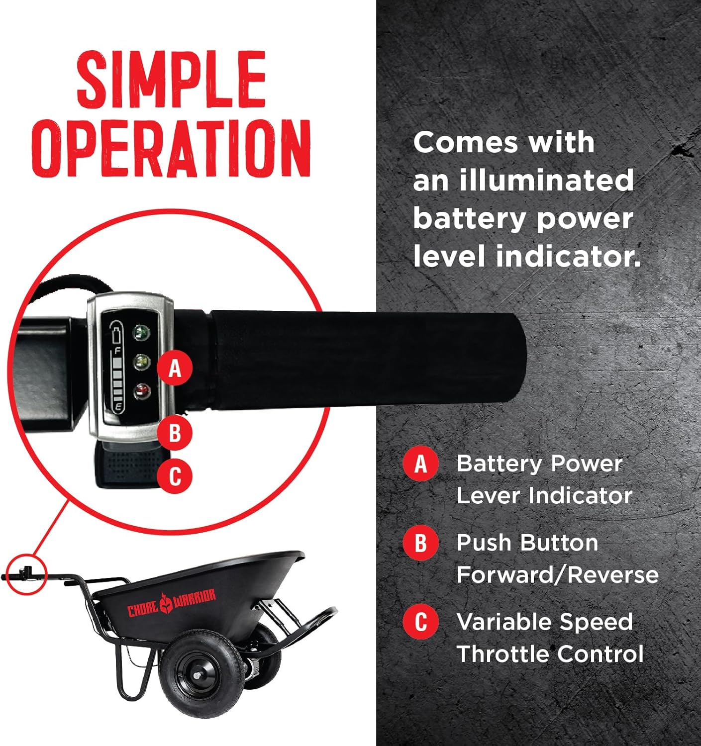 Electric Powered Wheelbarrow 350 LBS Capacity and 6 Cu FT Poly Tray 8 Hour Battery Life