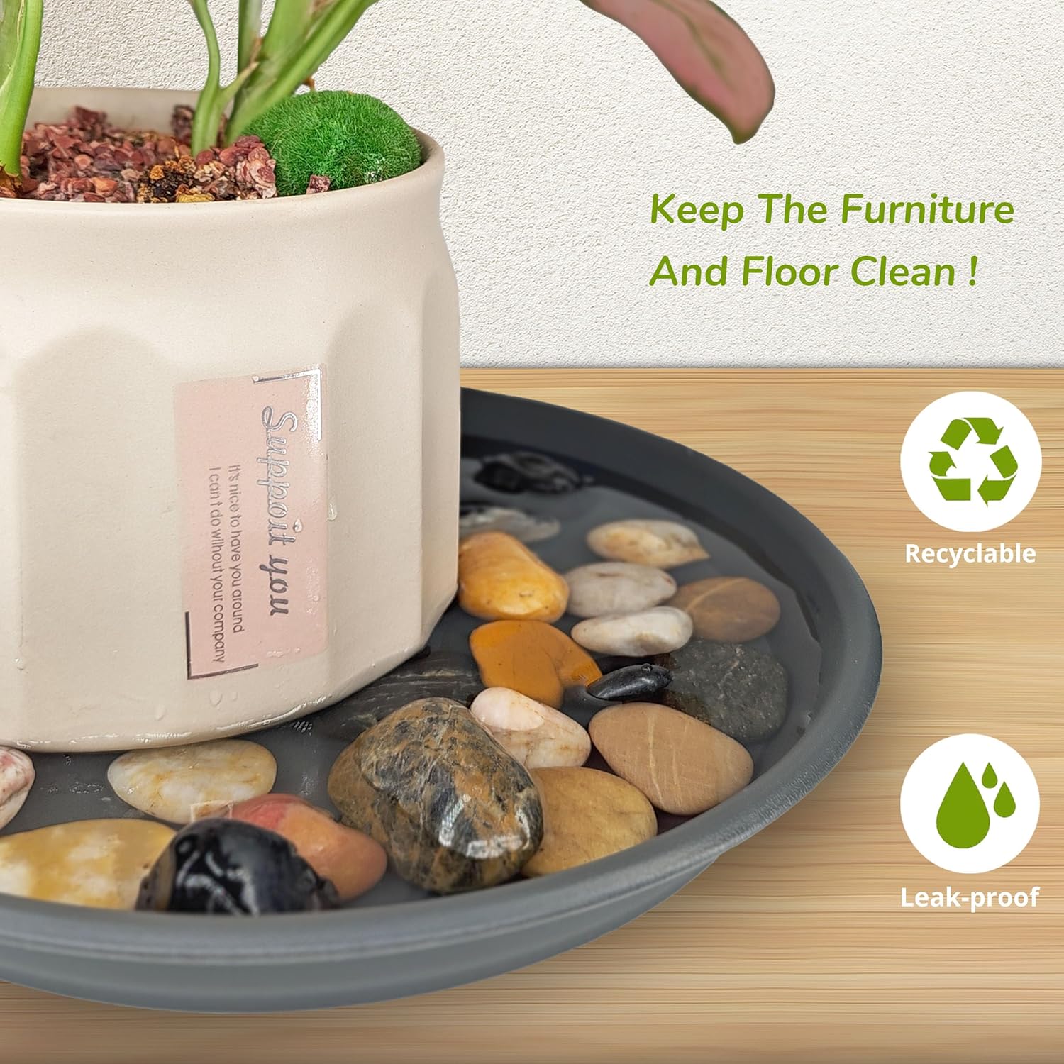 - Optimal Plant Drainage: These plant pot saucers help you catch water from the plant pot drainage hole. help protect wooden floors, carpets, and tabletops from water drainage and soil spillage. You can decorate the plant drip tray with colorful pebbles