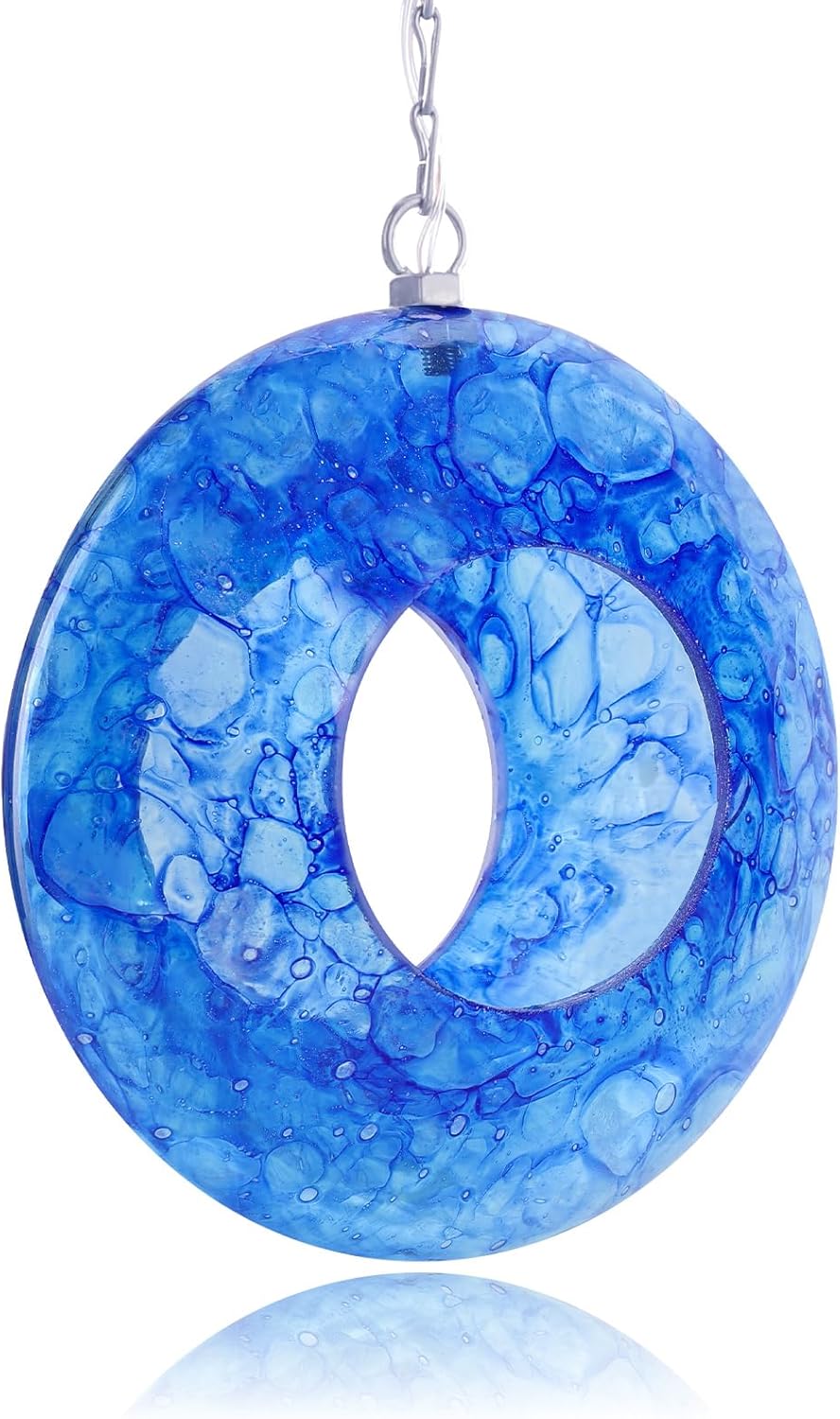 Yinns Mosaic Bird Feeders for Outside Hanging Fly Through Bird Feeder with Round Shape Solar Birdfeeder for Yard Garden Decor Bird Lvoers Gifts, 8-Inch Bule