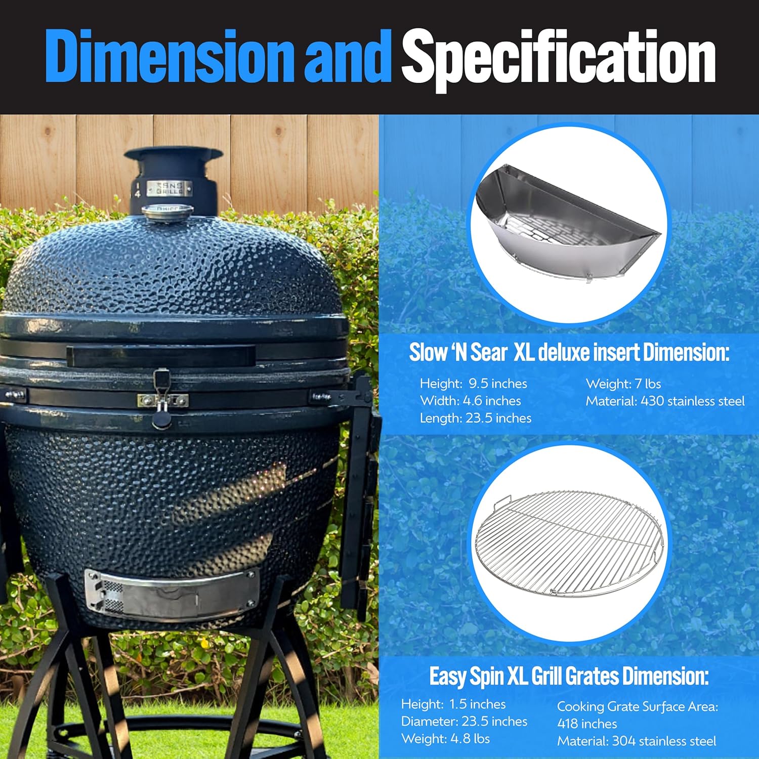 - Tailor-Made for XL Big Green Egg: Upgrade your existing XL Big Green Egg with the Slow ‘N Sear Cooking System, designed specifically to enhance your grilling and smoking experience with precise two-zone cooking. This system fits the 2021 and newer XL Big Green Egg model.