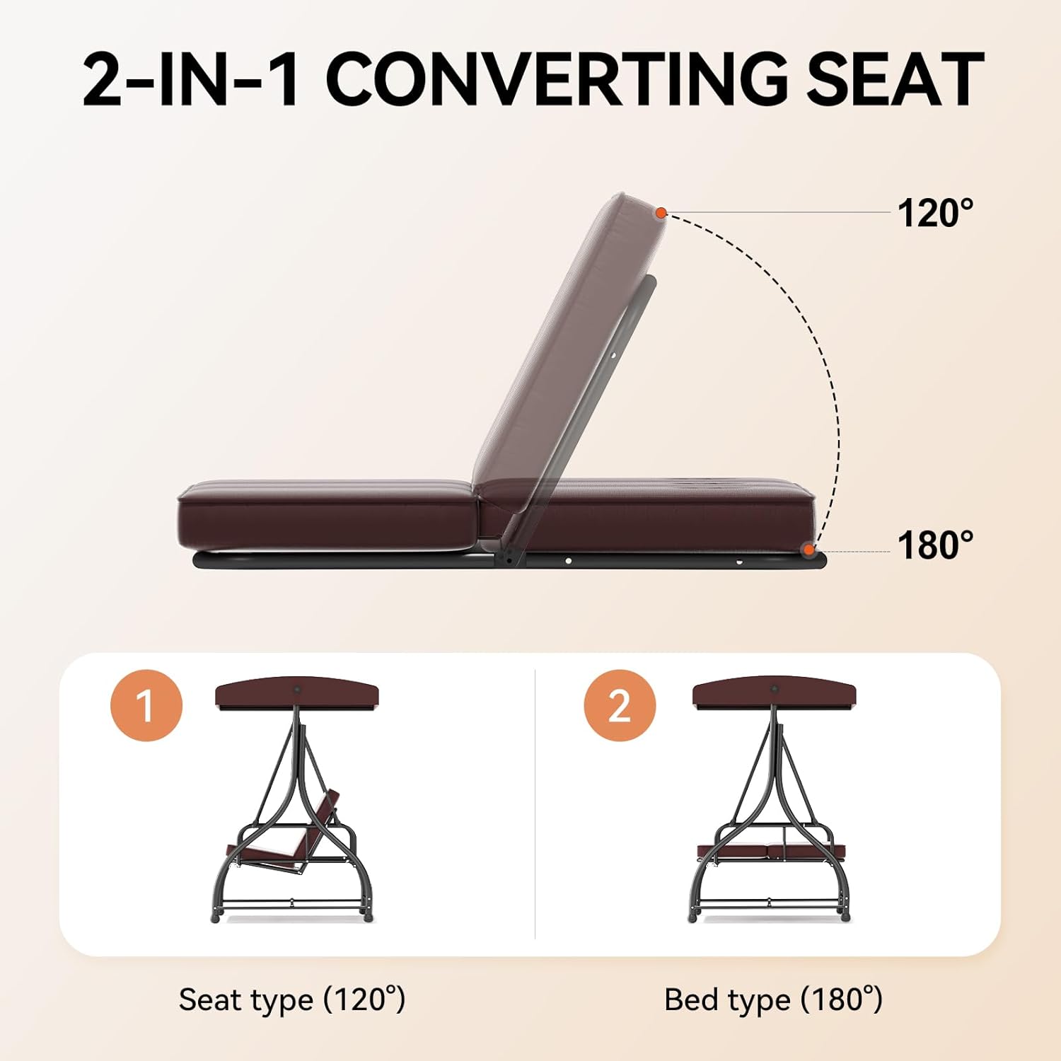 - 【2 IN 1 DESIGN】The Outdoor Swing Chair can be turned into a flat bed. With a simple lock and release system allows the bench seat to change into a comfortable flatbed for hours of reclining and relaxation.