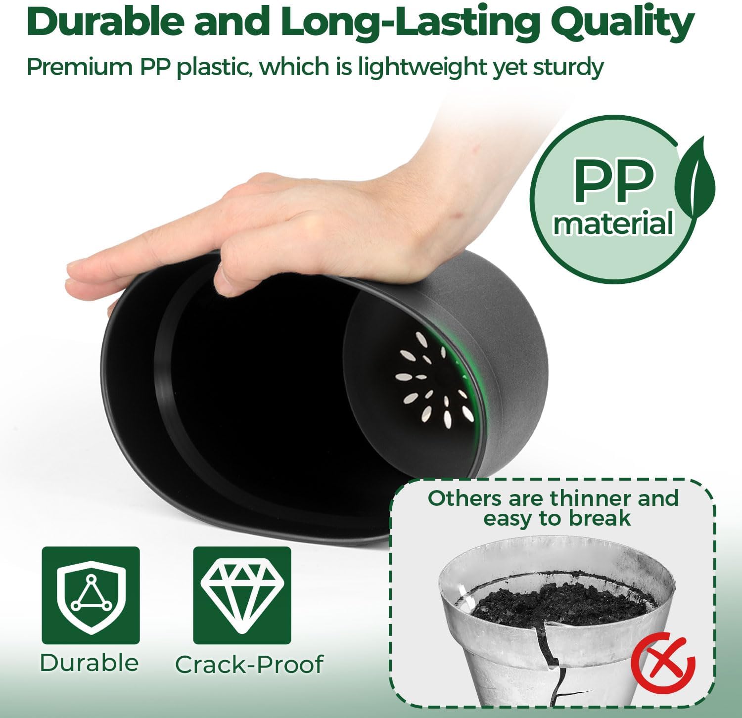 - 🌱【Durable & Lightweight Plastic Pots】T4U flower pots Made from premium plastic, these plastic pots are lightweight yet tough enough to withstand drops and outdoor elements, offering long-lasting support for your plants year-round