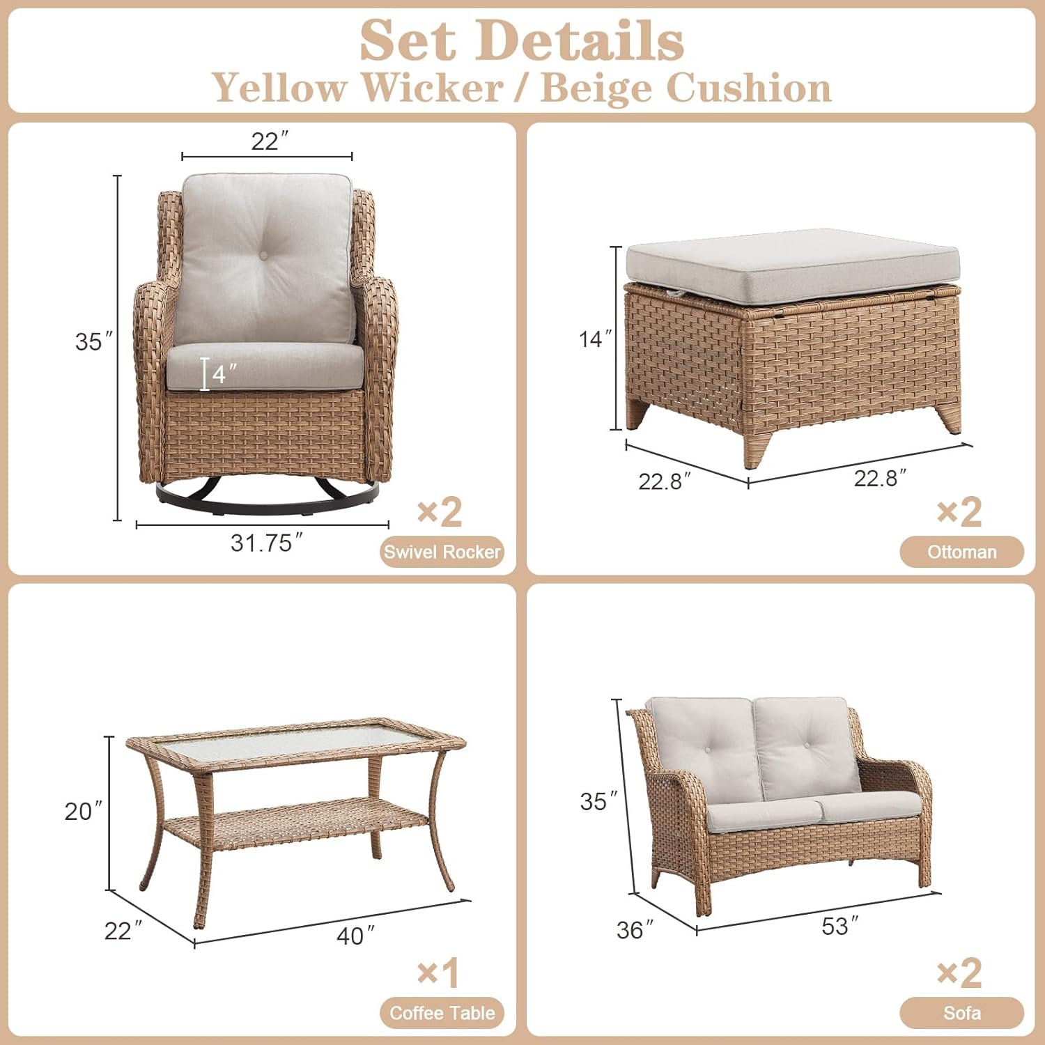 - Color : Yellow Wicker / Beige Cushion