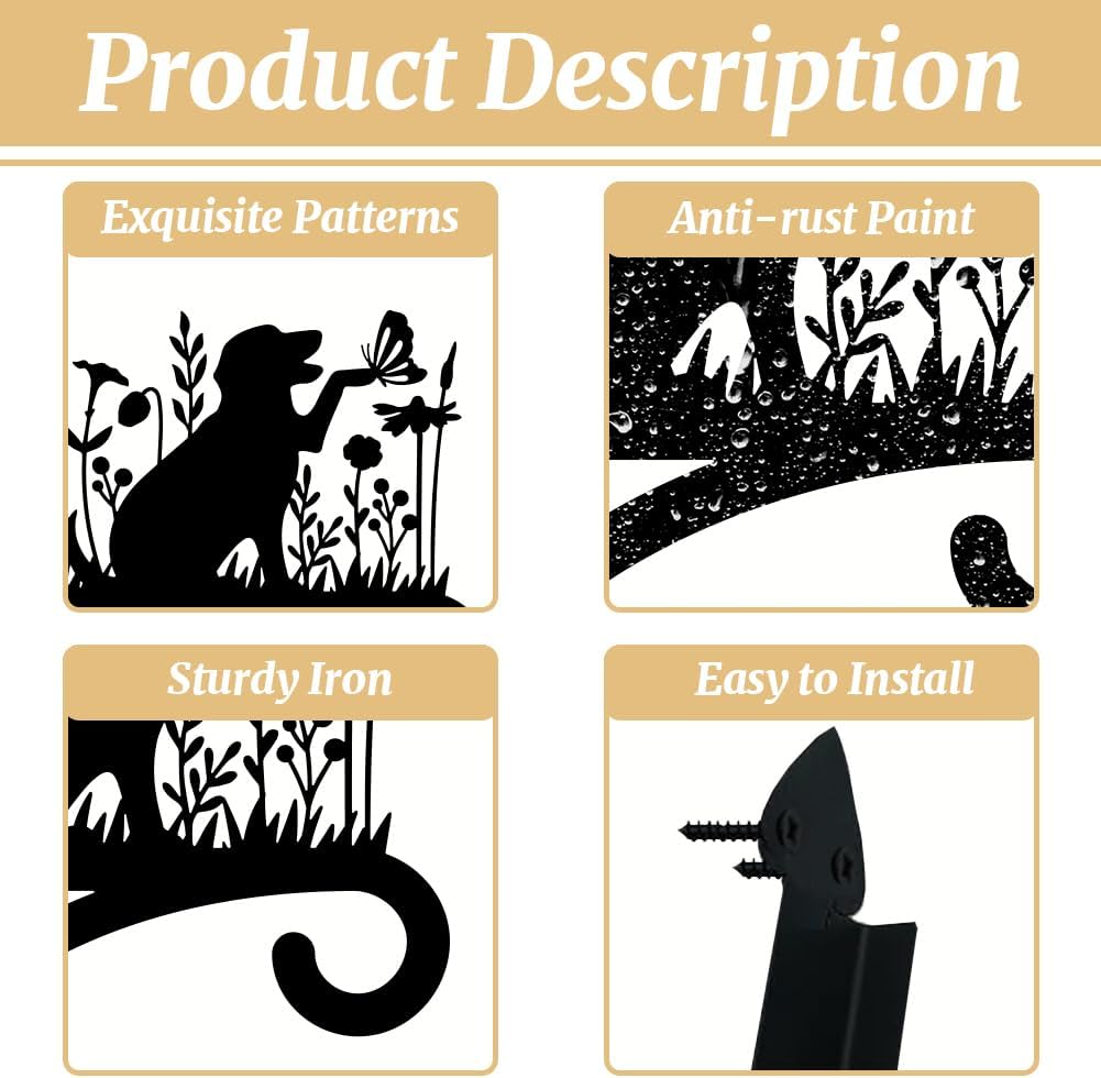 Peacoblue Iron Plant Hangers Holder for Outdoor Indoor Hanging Plants Fern Pots, Lantern, Bird Feeder, Wind Chimes, 12โx14โ Dog Weather Resistant Metal Wall Brackets Hooks for Porch, Garden, Home(Dog)