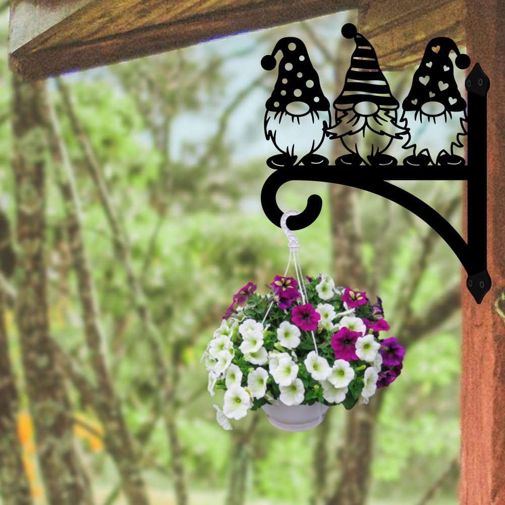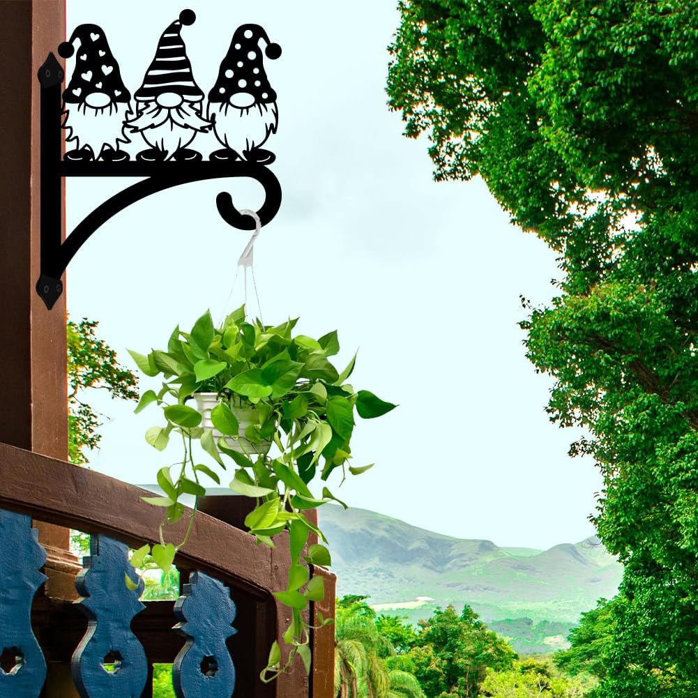 peacoblue Iron Plant Hangers Hooks for Outdoor Indoor Hanging Plants Flower Fern Pots, Lantern, Bird Feeder, 12”x14”Gnome Weather Resistant Metal Wall Brackets Holder for Porch, Garden, House(Gnome)