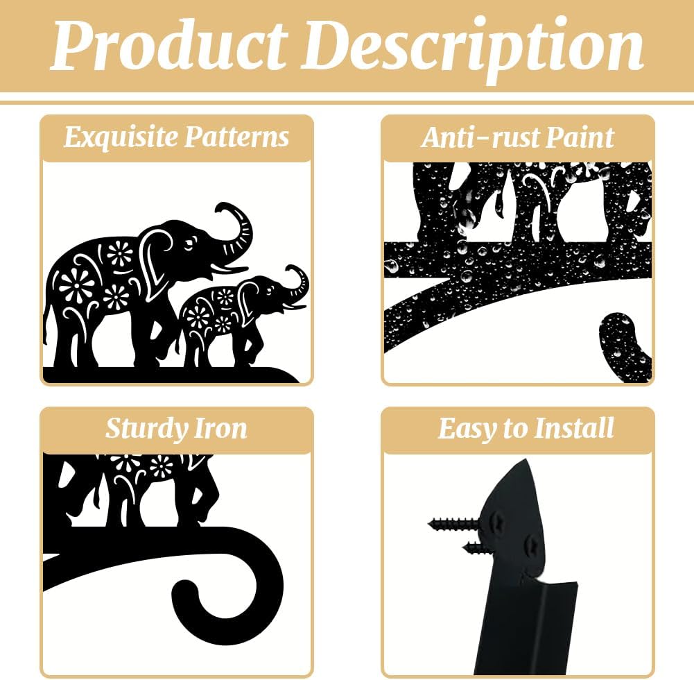 peacoblue Iron Plant Hangers Holder for Outdoor Indoor Hanging Plants Flower Fern Pots Lantern Bird Feeder Wind Chimes, 12โx14โ Weather Resistant Metal Wall Hooks for Porch Garden Farmhouse(Elephant)