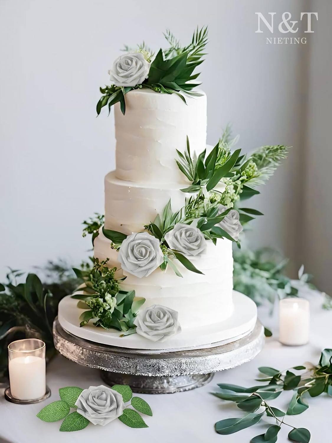 - Real Looking Roses: Realistic 50 Silver White artificial roses. Our artificial roses looks pure and elegant. Enjoy the beauty of natural looking flowers without watering, add great touch to your home.