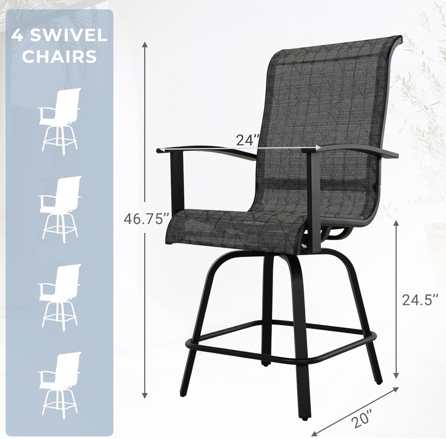- Functional Bar Stools: The balcony bar chair with 360 ยฐ free rotation design, combined with the reinforced design of double support rods at the bottom, can enjoy the outdoor scenery 360 ยฐ freely