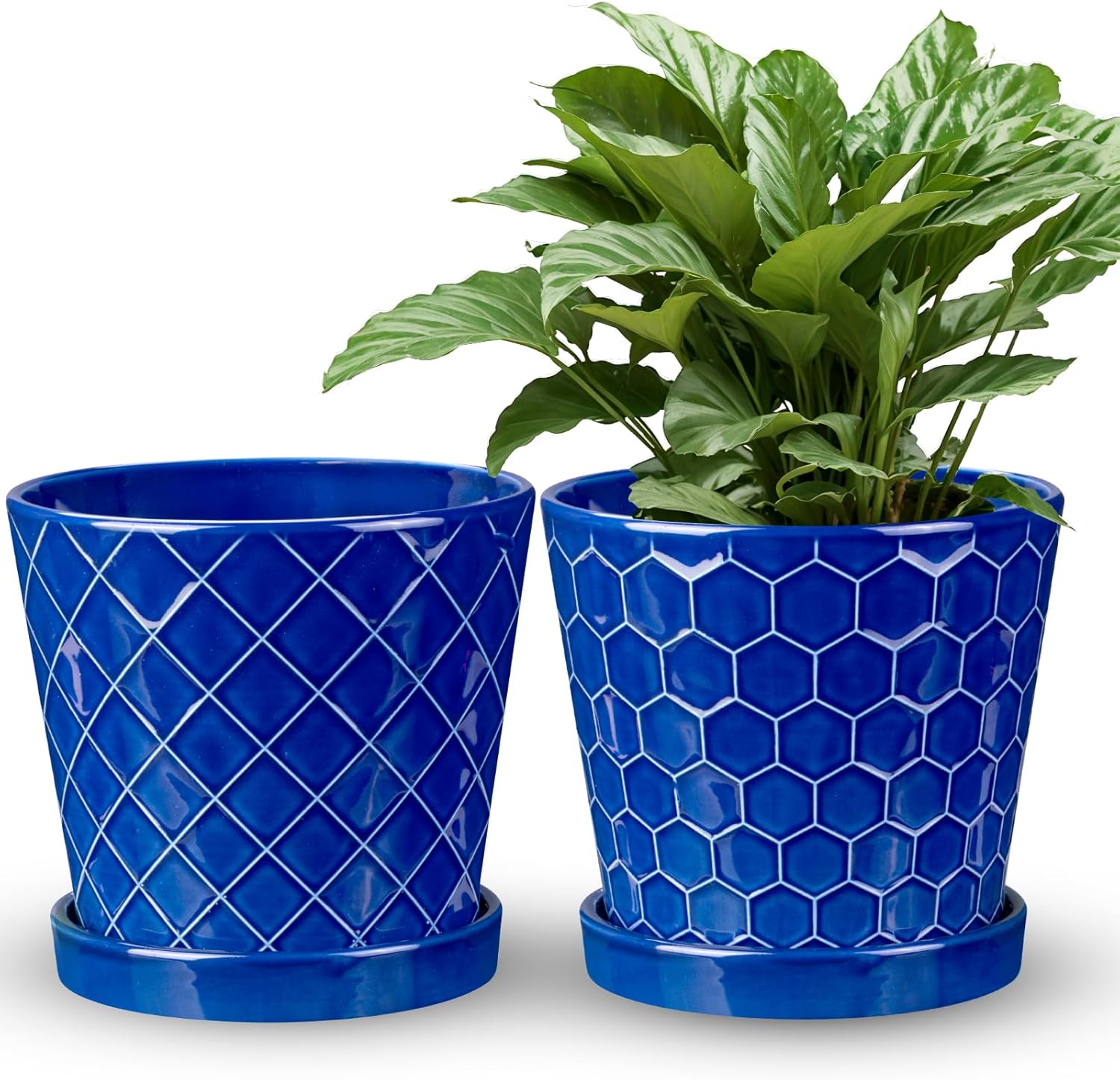 EFISPSS 6 Inch Pots for Indoor Plants,Ceramic Plant Pots,Planters with Drainage Hole and Saucer, Flower Pots Desktop Office Windowsill Decoration Gift Set of 2 - Sapphire Blue