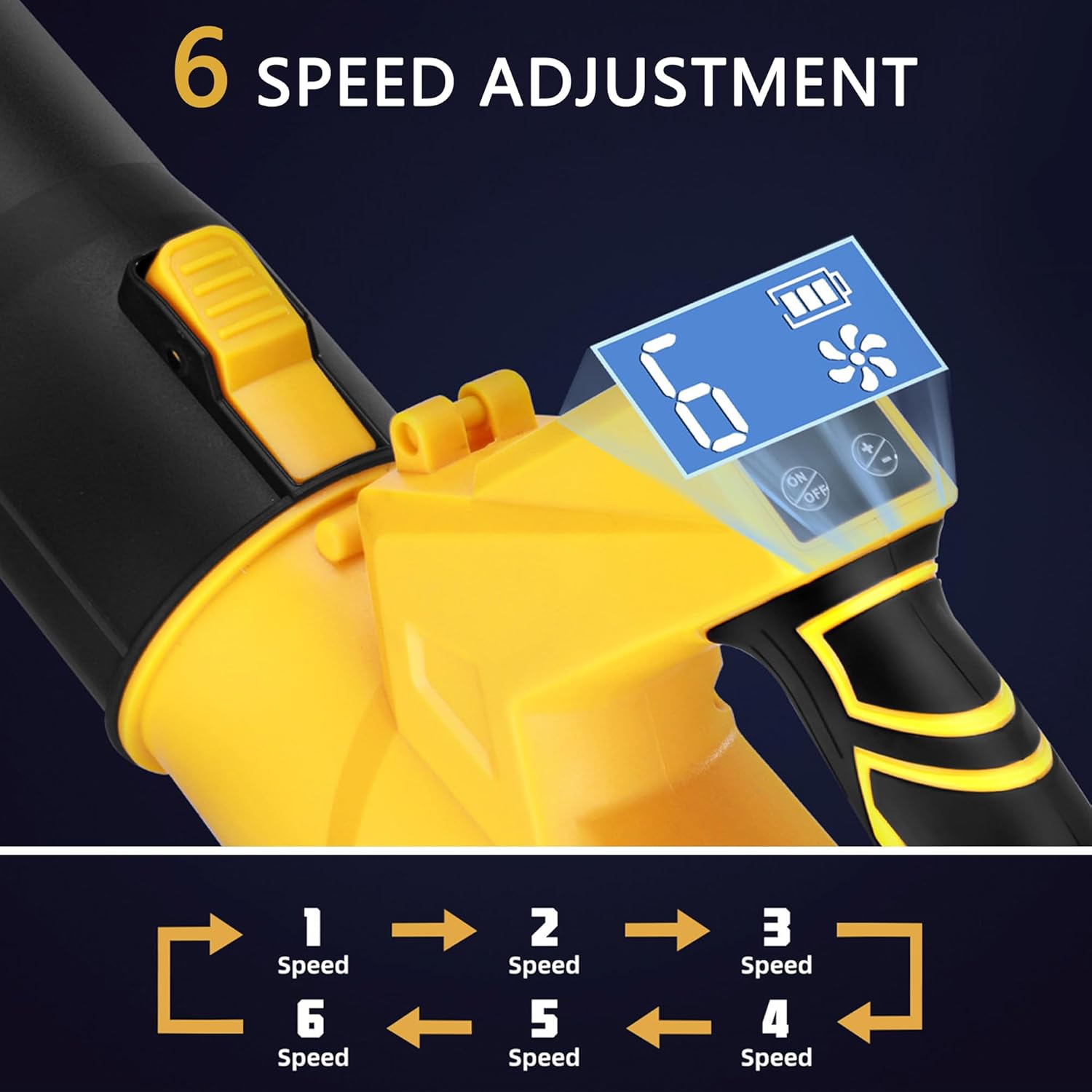 - 6 Adjustable Speeds & 2 Adjustable Tubes: This battery-powered leaf blower provides you with 6 adjustable speeds; high-speed mode averages 170 MPH unloaded and low-speed mode averages 60 MPH unloaded. The leaf blower is battery-powered and suitable for all usage scenarios.With an adjustable tube, making operation easier helps increase reach and blower efficiency.