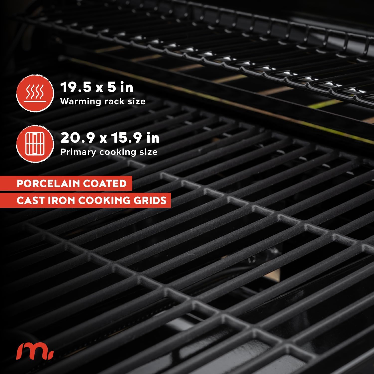 - 【DURABLE CAST IRON GRILL GRATES】Constructed with matte-finished cast iron, these grates provide excellent heat distribution, enhanced non-stick properties, and increased resistance to rust and cracks for reliable, long-lasting grilling.
