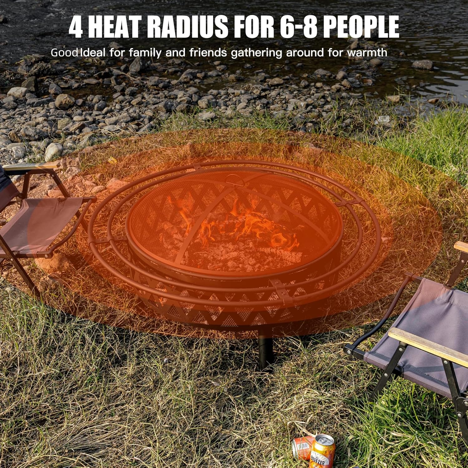 - [ Beautiful ]This fire pit also features a decorative cross weave pattern that complements any outdoor decor style. The side of wood-burning fire pit is created with modern geometric cut-out design which catches firelight for creating fun shadows. The drilled design promotes airflow and keeps the fire strong. All sophisticated designs of the fire pits for outside are dedicated to the warmth and comfort for you.
