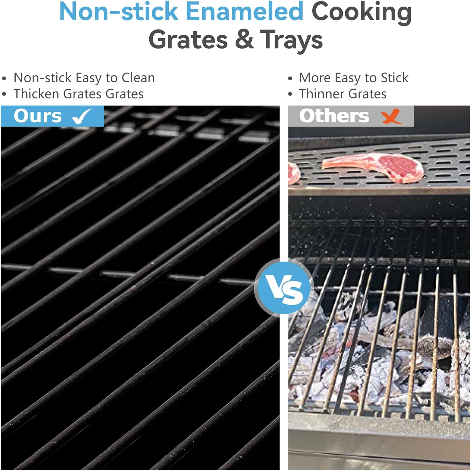 - BBQ GRILL WITH SPACIOUS COOKING SPACE: 505 sq in porcelain-enameled steel wire cooking grates and 289 sq in chrome-plated steel wire warming rack give a total of 794 square inches cooking area