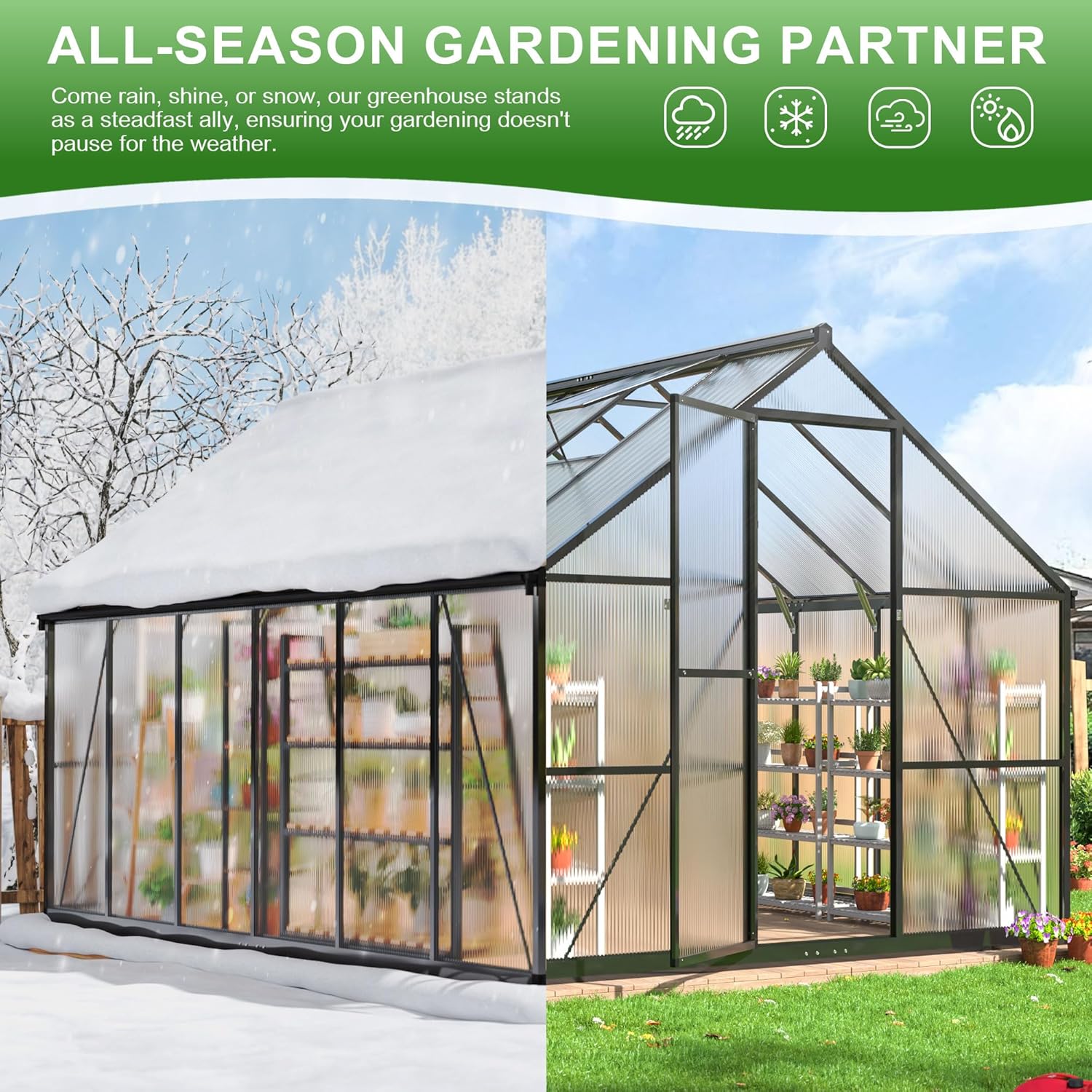 Polar Aurora 8x12 FT Greenhouse, Quick Aluminum Assembly Structure Polycarbonate Greenhouse, Walk-in Greenhouses for Outdoors with Ventilated Windows, Green Houses for Outside Backyard Garden