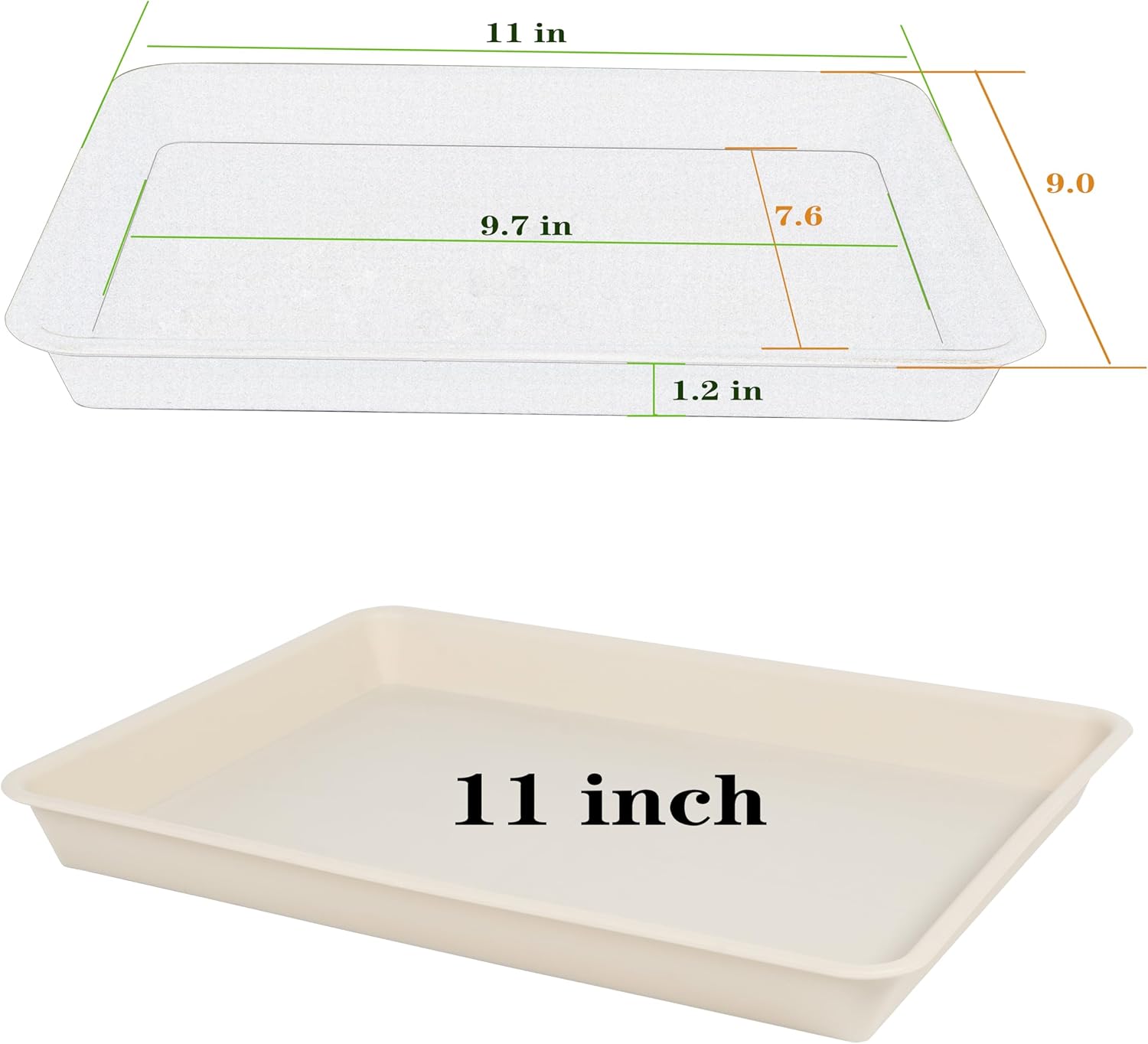 4 Pack Plant Saucer Tray Rectangular, Plant Saucers for Indoors, Heavy Sturdy Plastic Plant Drainage Trays, Plant Drip Trays for Pots, Seed Starter Growing Tray (11 x 9 inch, Beige)