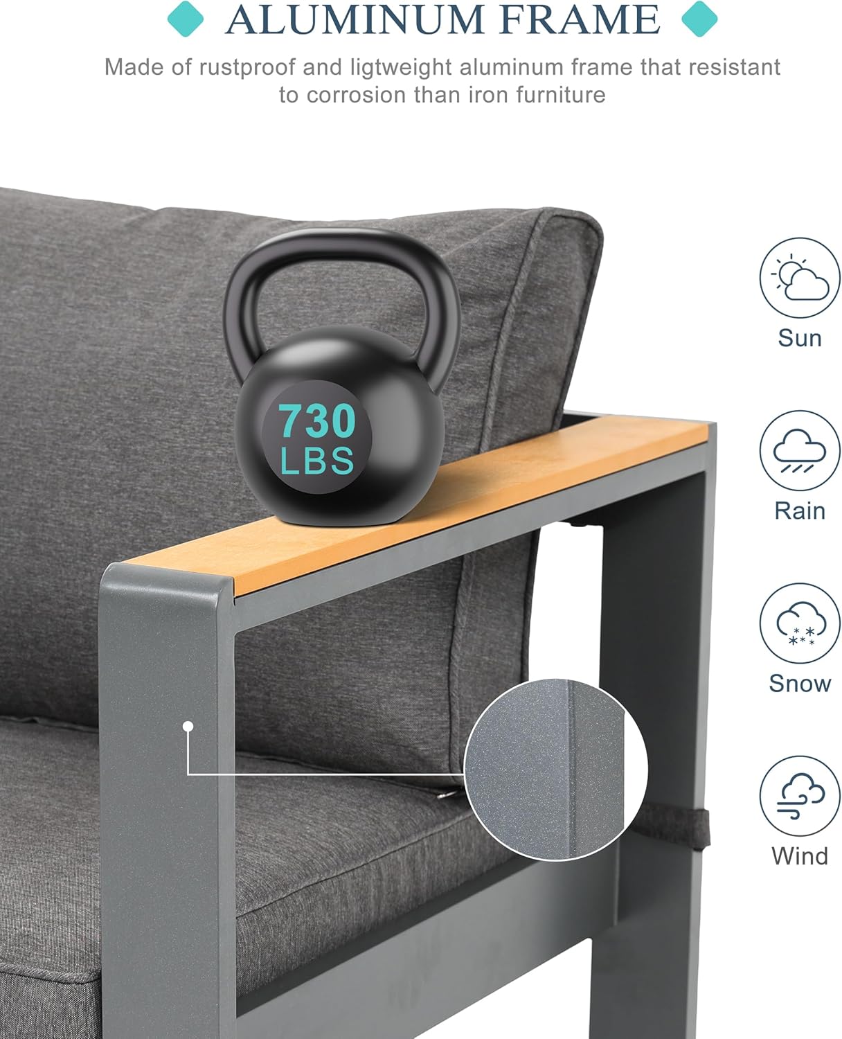 - Durable Aluminum Construction: Crafted from premium, thick-gauge 100% aluminum with a protective powder-coated finish, this modern outdoor patio couch is engineered to withstand harsh weather, resist fading, cracking, and rust for long time of sturdy use, while remaining surprisingly lightweight
