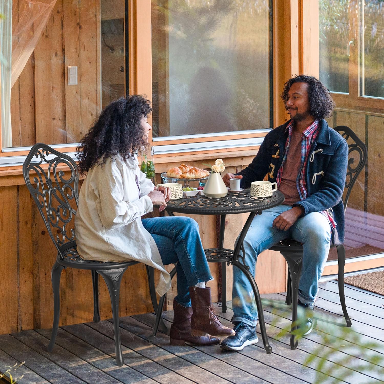 • WEATHER-RESISTANT: This patio bistro set is made from sturdy and solid cast aluminum, so itโ€™s resistant to rust, weather, fade, chip or crack. With durable antique bronze finish and carefully burnished spotwelds, it can last season after season
