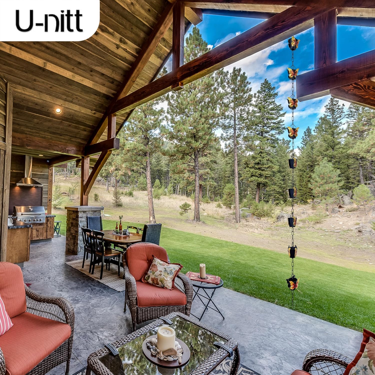 - SUPERIOR CRAFTSMANSHIP - is evident in every detail of this expertly designed U-nitt rain chain. Meticulously crafted from premium, heavy-duty materials, it offers both durability and elegance. Each link or cup is precision-shaped to ensure smooth water flow, effectively guiding rainwater from your gutter in a graceful cascade. Rust-resistant and built to last, this rain chain blends functionality with artistry, adding a refined touch to your homeโs exterior while enhancing rainwater management.