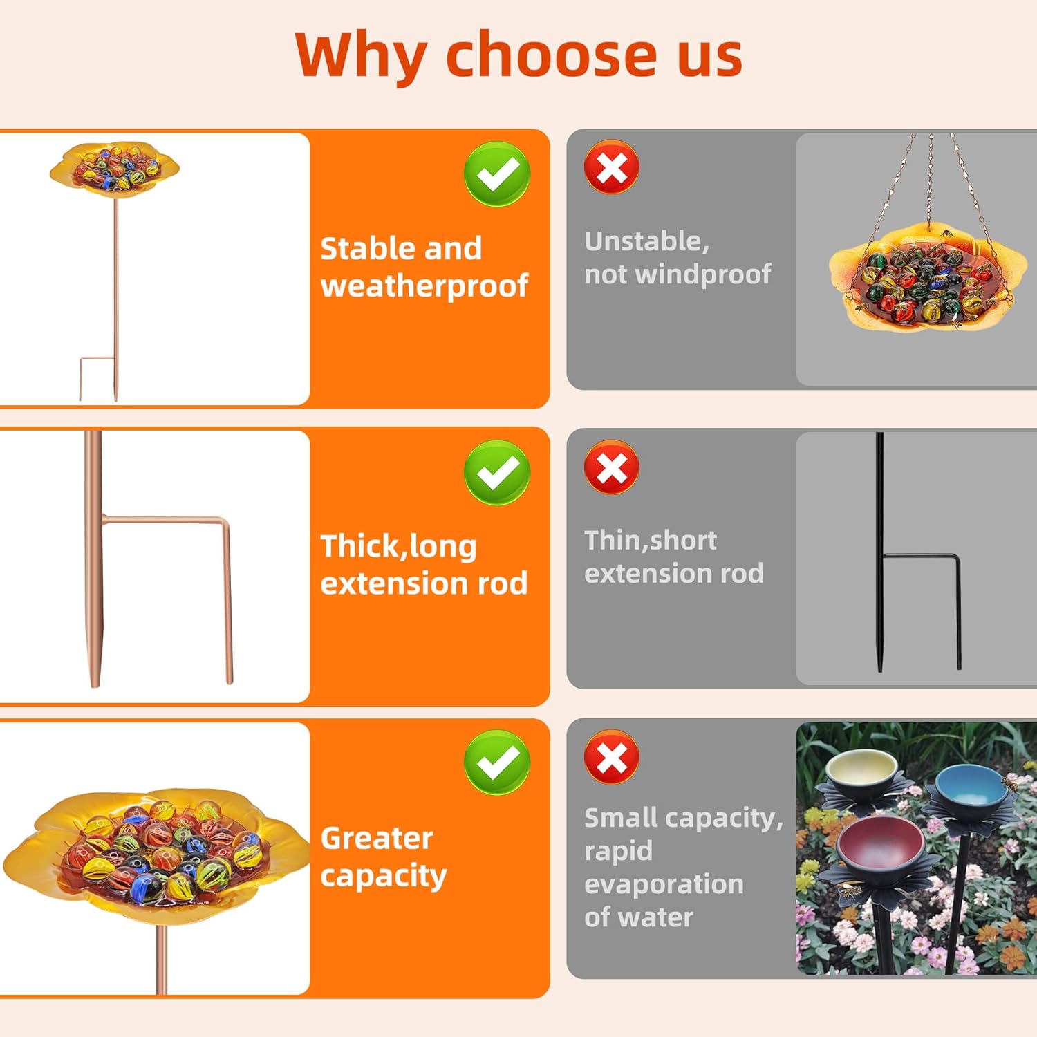 - 😘【More Stable and Not Afraid of Wind and Rain】:Compared with hanging bee feeders, our standing bee feeders for outside is more stable,stable prong base deep into the soil,will not shake even in bad windy weather. Keeps the bees safe to drink.Bee watering station for garden is made of metal and lasts for years.
