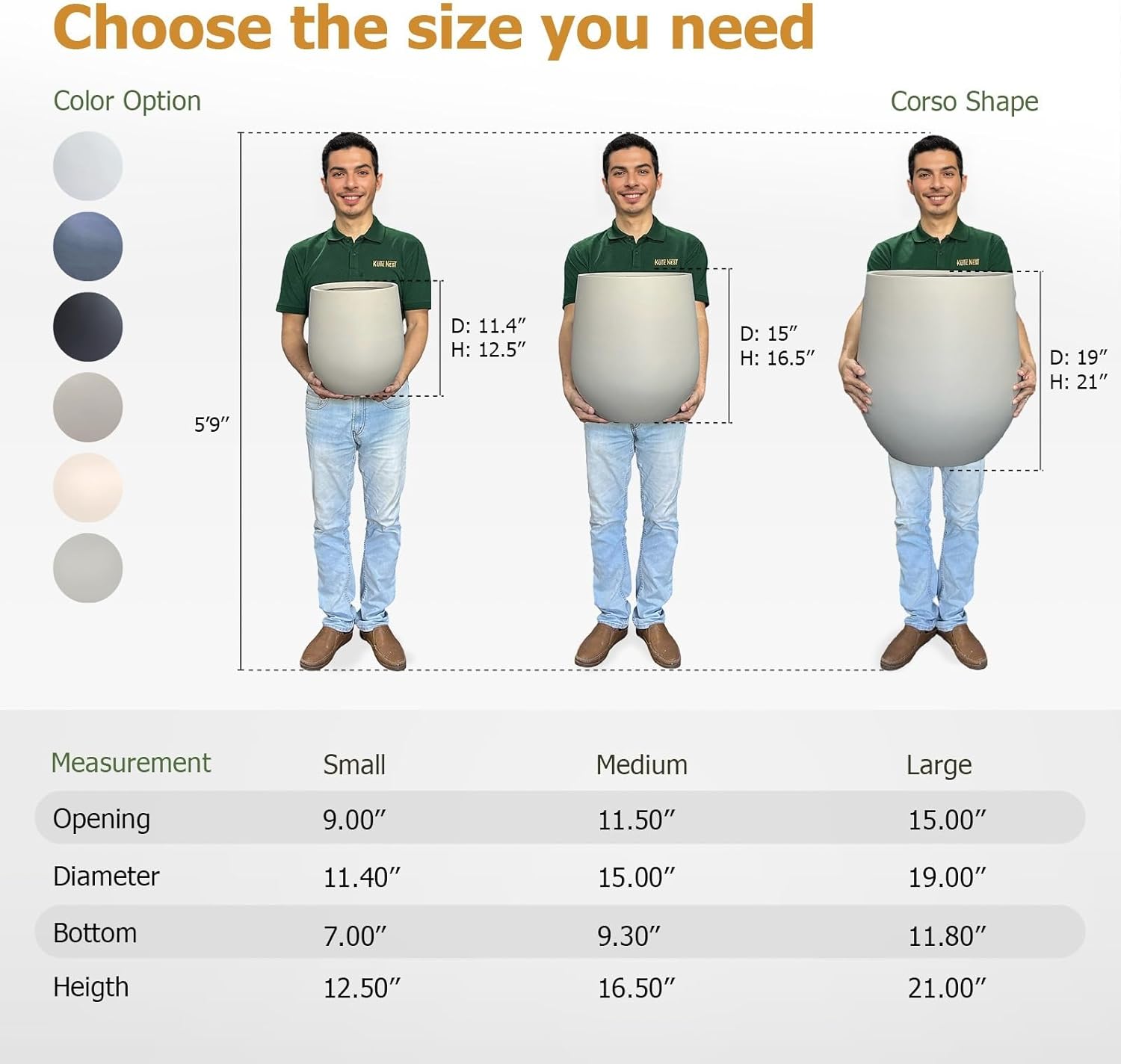 - Medium Planter: 15"D x 16.5"H (11.5" Pot Opening)