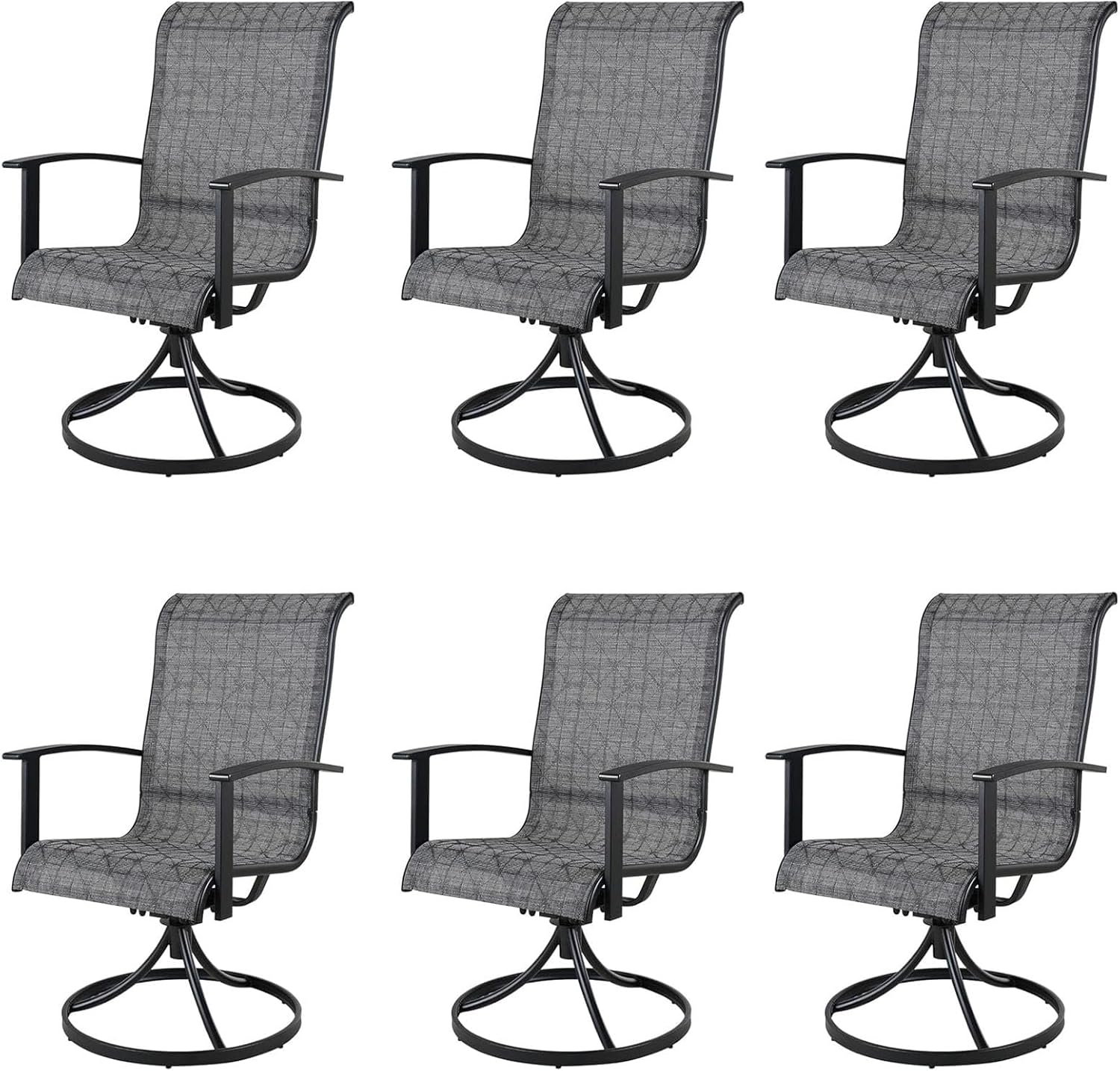 Grand patio Outdoor Swivel Dining Chairs 6-Piece Patio Dining Chair Set Mesh Sling Patio High Back Swivel Rockers, Black & Grey Plaid