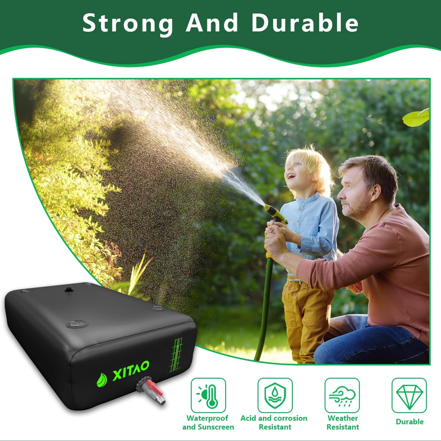 - 【Thicken 1300D PVC Materials】Made from premium thicken 1300D PVC material, this rain barrel is super strong and durable. It has unique properties such as rainproof, fireproof, waterproof, tearing force, non cracking, wear-resistant, stretch resistance and UV resistant, antistatic, and easy to form. Water storage containers can be used repeatedly for many years. This material is also eco-friendly safe, non-toxic and odorless.