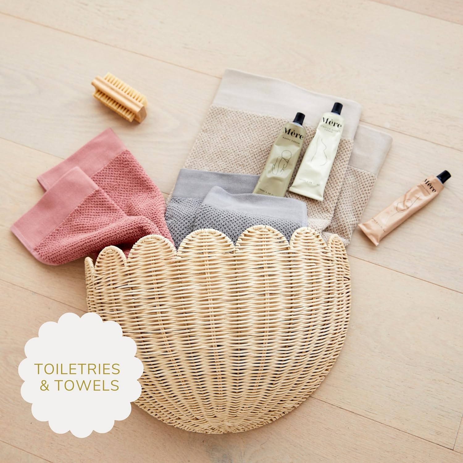 - CREATE A NATURAL OASIS - Elevate your nursery with Bebe Bask’s scalloped home decor. The exquisite range of scallop decor in woven rattan, from changing baskets to diaper caddy organizers, comes together to form a seamless and stylish environment, marrying functionality with sophistication