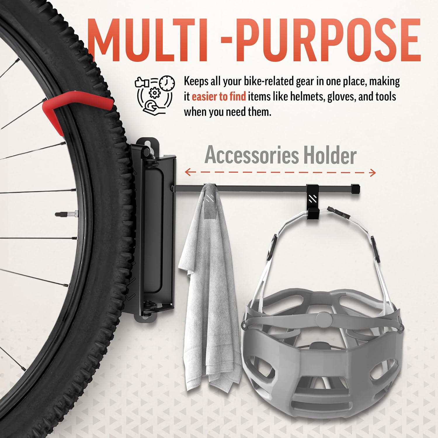 - Built In Accessories Holder Hangs Your Helmet and Gloves Right Where You Need Them