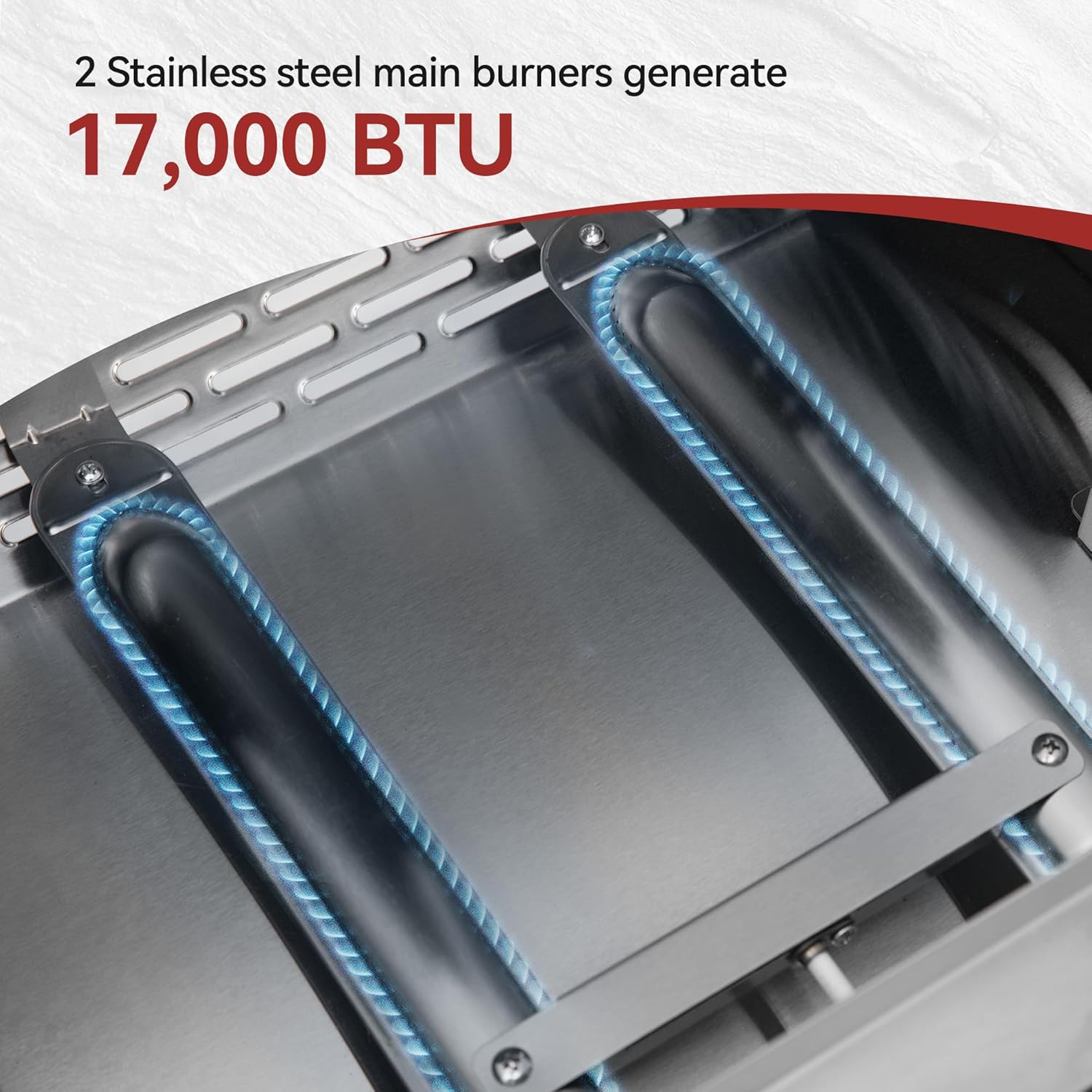 - Versatile Outdoor Performance: Master Even Heat Control (stainless steel burners, flame tamers, porcelain surfaces). This portable griddle grill combo excels for versatile outdoor adventures like camping, BBQs, and tailgate parties, making gatherings memorable