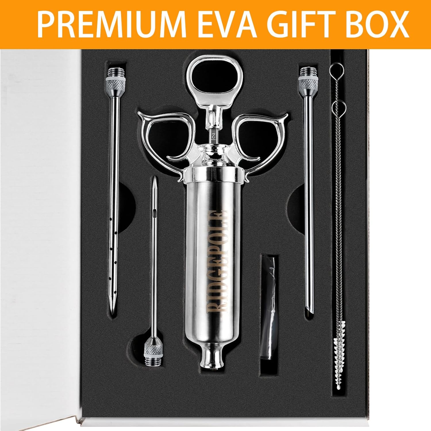 - [Convenient & Fast Cleaning] - All parts of our meat injector are detachable for easy cleaning. Besides, we provide two needle brushes to help you clean it faster and more thoroughly. When you use the seasoning injector, cleaning is straightforward and efficient. Our meat injectors are designed for your convenience, making post-cooking cleanup a breeze.