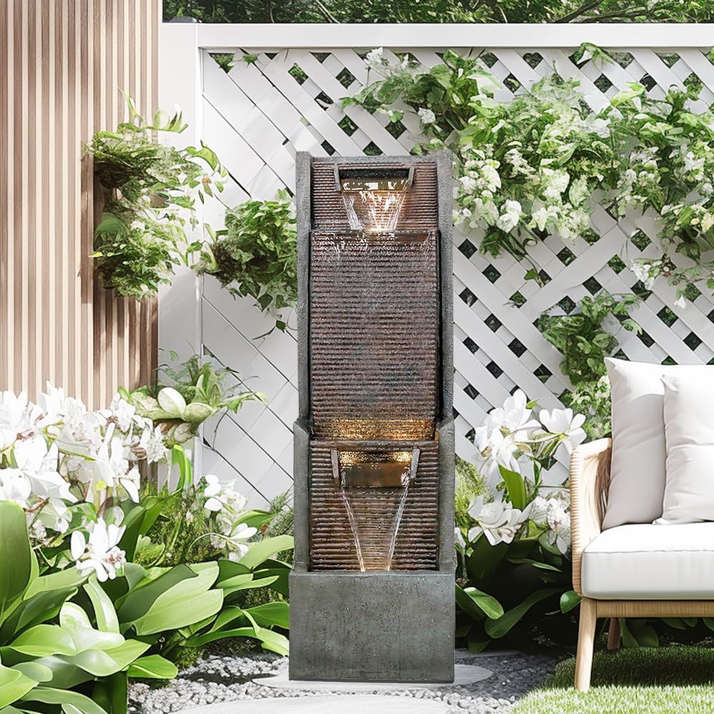- Lighted Outdoor Fountain: Resin construction large outdoor water fountain is lightweight and portable for moving to inside or outside. Easy to place it everywhere you want to create an artistic and relaxing natural scene.