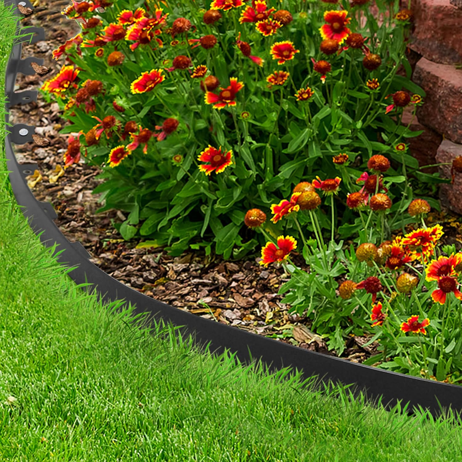 - Sturdy and Flexible - The landscape border kit is made of plastic material, sturdy enough to keep pebbles, mulch or other stuff in place and flexible enough to make a desired design arond your landscape yard.