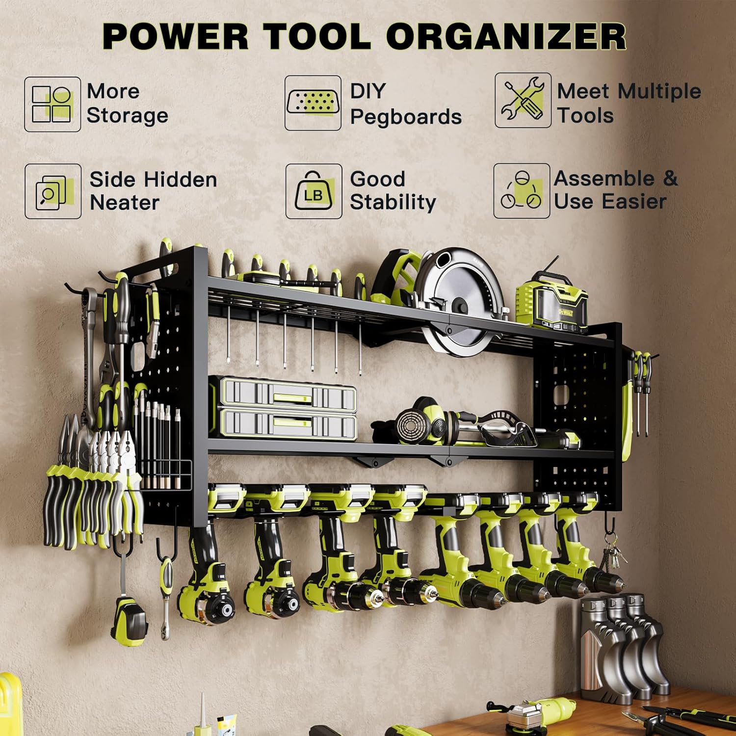 Power Tool Organizer Wall Mount,Cordless Drill Hanger Storage Rack 8 Drill Holder,3 Layers Heavy Duty Power Tool Storage Rack (Black)
