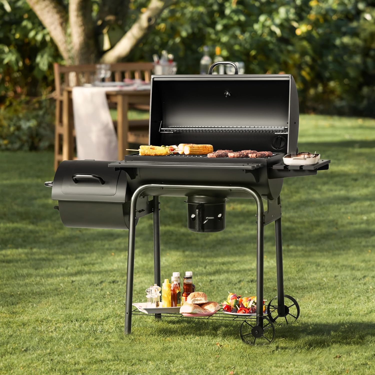 Devoko Charcoal Grill, Outdoor BBQ Grill with Offset Smoker and Side Table for Garden and Parties
