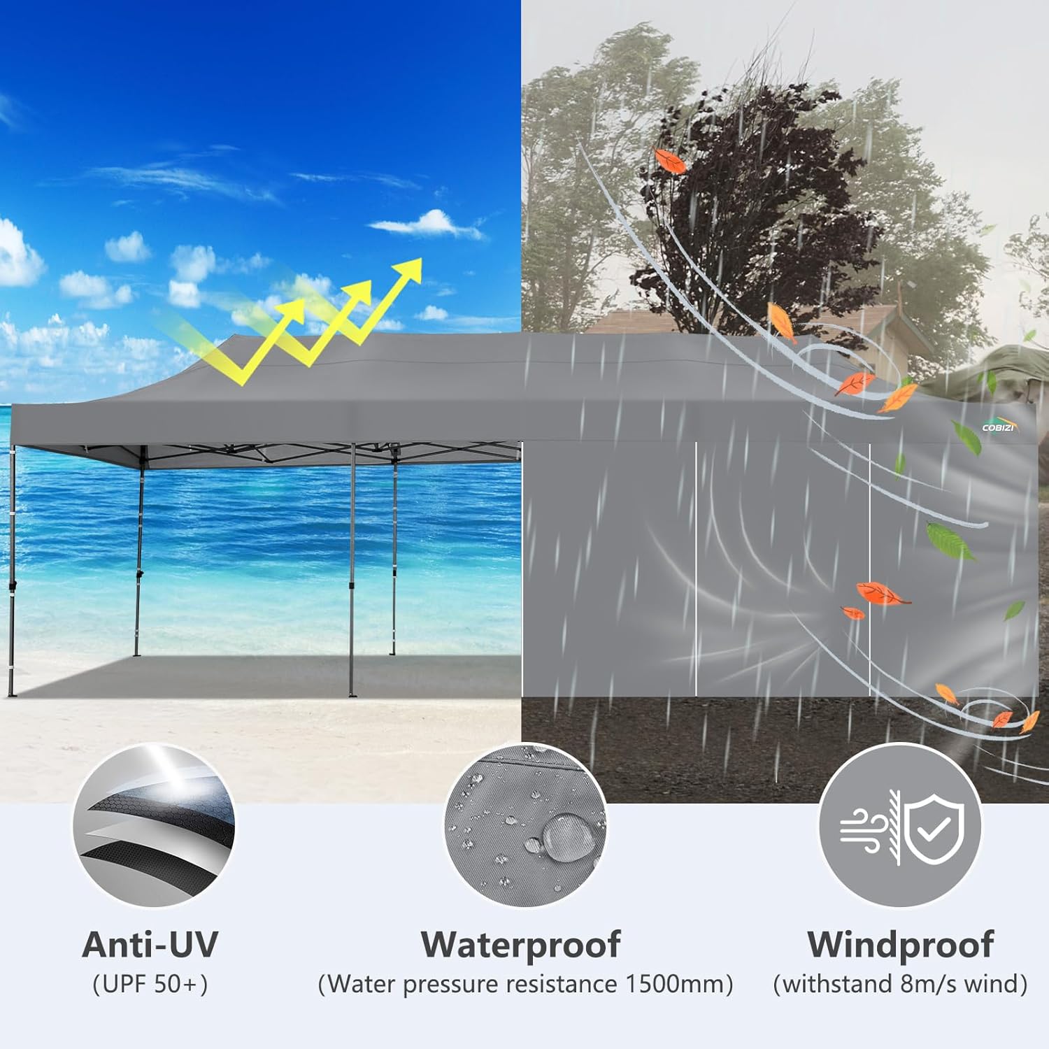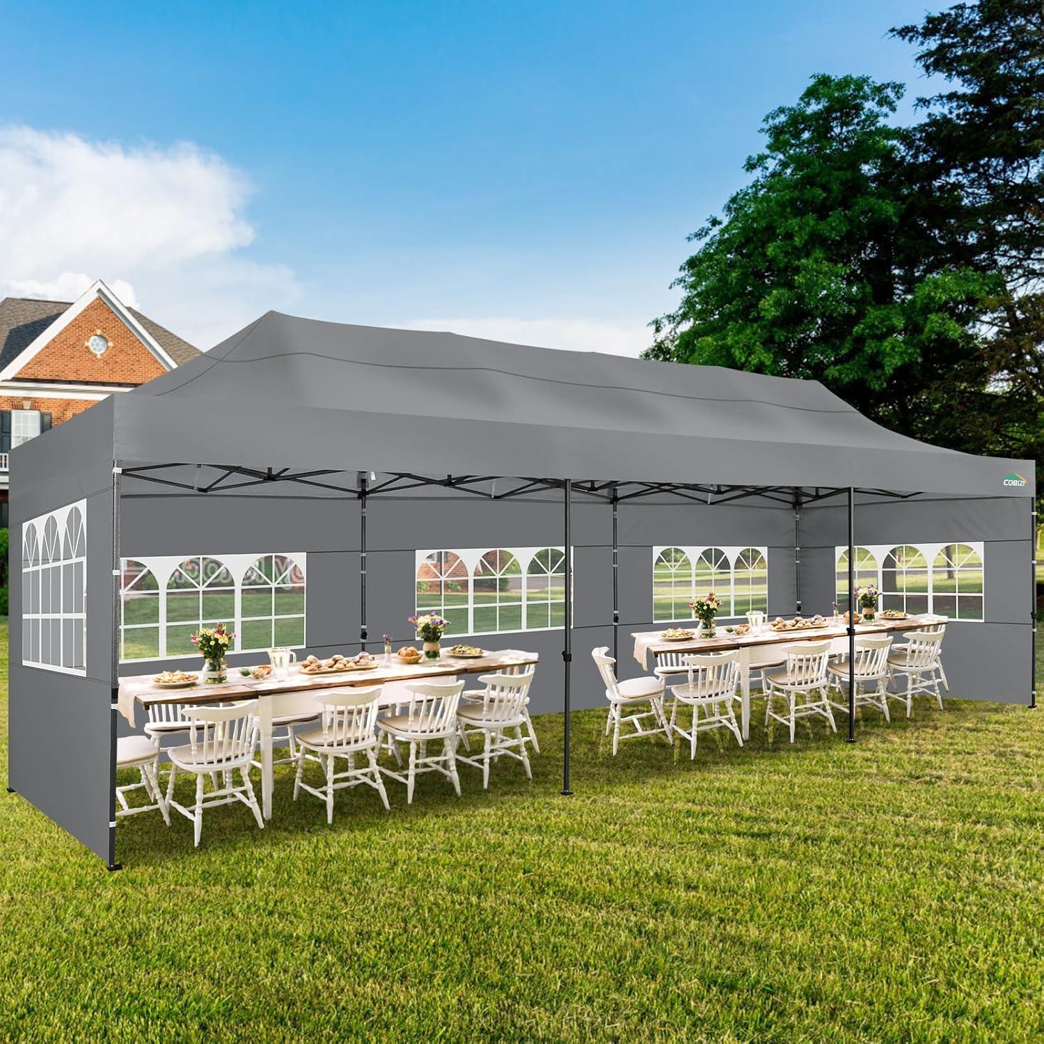 COBIZI 10x30 Pop up Canopy Tent 10x30 Canopy with Sidewalls, Heavy Duty Party Tent Tents for Parties, Foldable UPF 50+ Waterproof Commercial Ez up Canopy with Roller Bag, Grey(Windproof Upgraded)