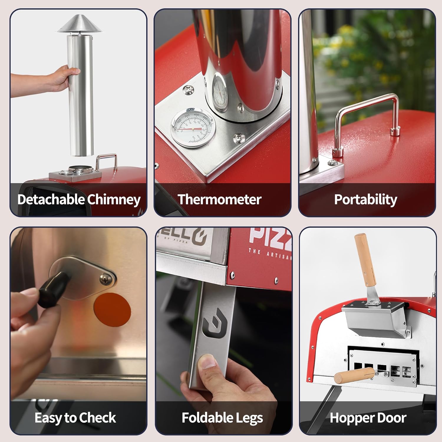 - Perfect Gifts for Family - Wood pizza Oven included removable parts: stainless steel Pizza Peel x 1, Pizza cutter x 1, cordierite 16" Pizza Stone x 1 , detachable Wood Tray x 1, waterproof Cover x 1 , Pellet Scoop x 1, You donโt need to pay extra money for these key Accessories. Brings the joy of thanksgiving home - Every household thrives on delicious pizzas! Perfect Christmas gifts for family, gather closer in the new year.