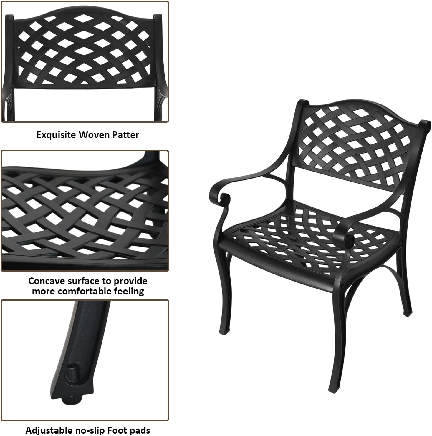 - All Weather Materials: Made of sturdy cast aluminum with a rust-resistant and fade-proof finish. Our patio bistro set is durable but lightweight, the maximum weight capacity of table is 250lbs, maximum weight capacity of a single chair is 300lbs.