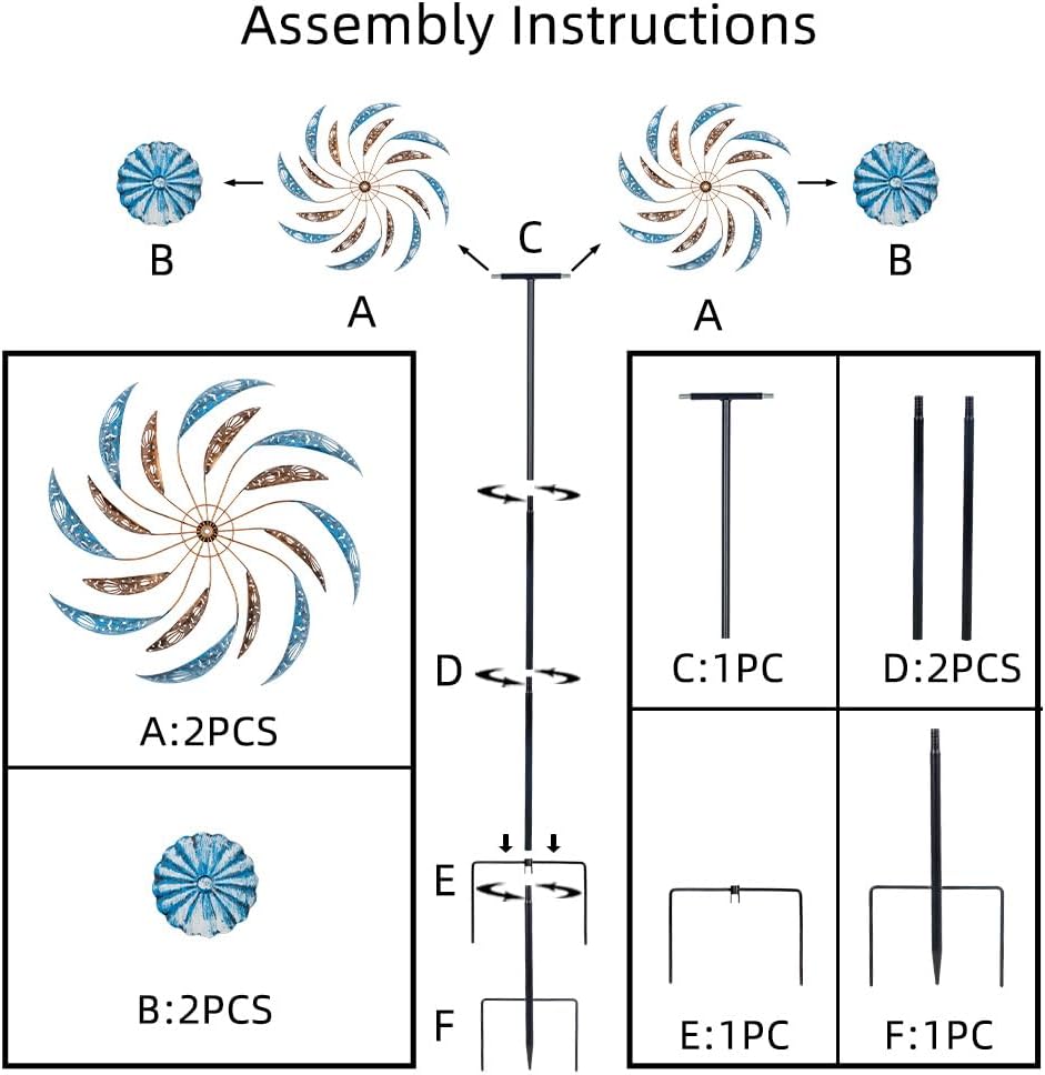 - Easy to Install:This wind spinners is easy to assemble with the instructions and no extra tools are needed. Because this one is large size wind sculptures, install the rod first and then install the blades, which is easier way