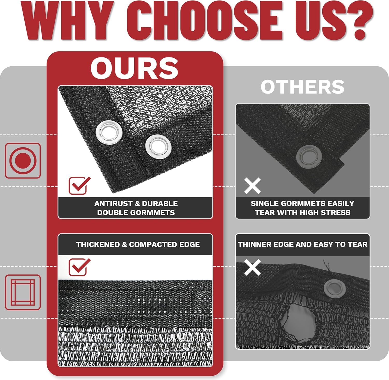 ShadeMart 50% Shade Cloth for Plant, Black 18FT x 45FT Custom Size Outdoor Shade Tarp, Shade Cover with Upgrade Grommets and Zip Ties, Netting Sunblock Net for Vegetables Flower Garden Greenhouse
