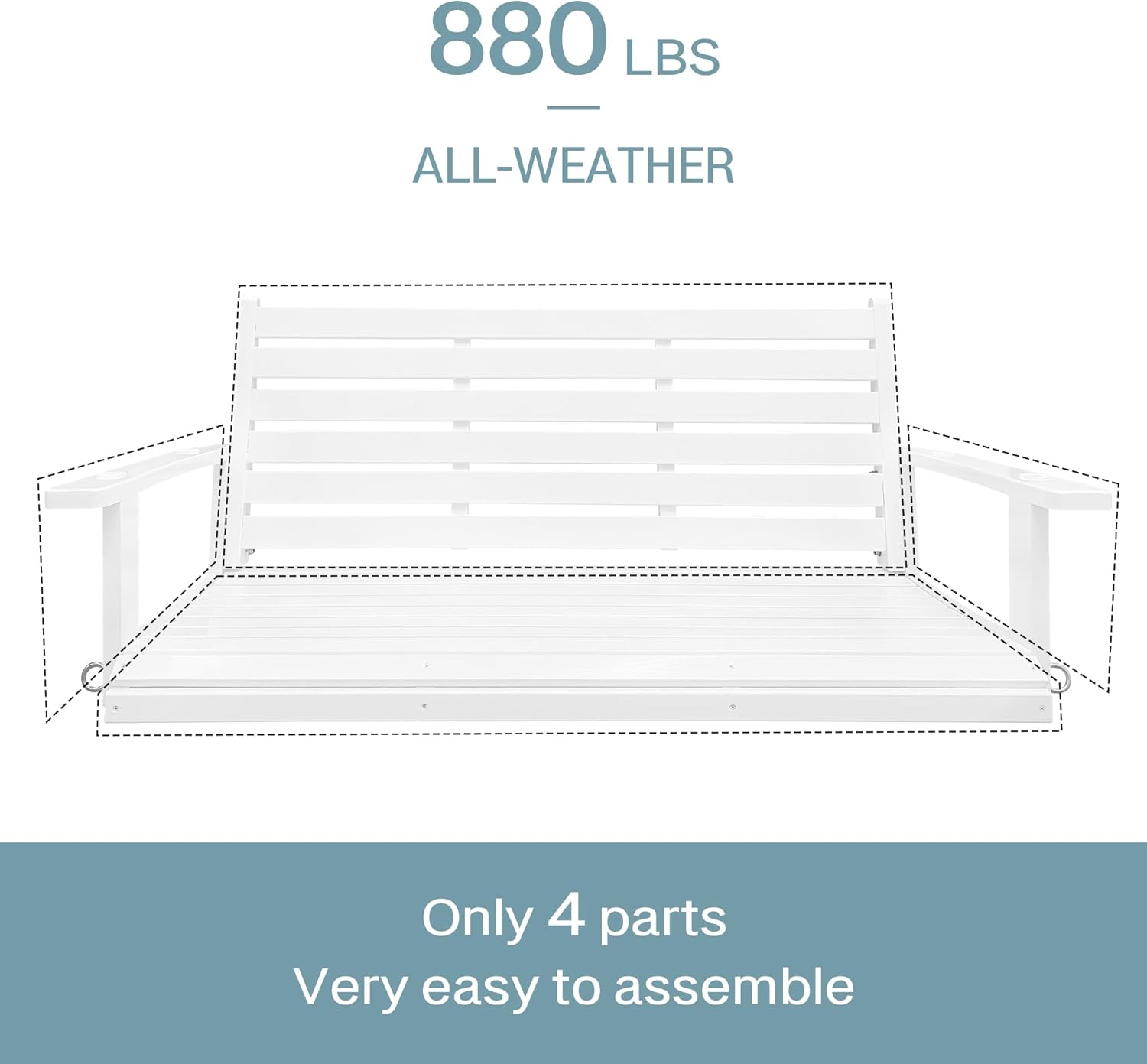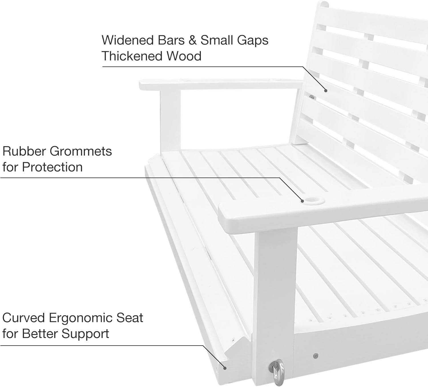 Wooden Porch Swing, Ergonomic Seat, Bench Swing with Hanging Chains and 7mm Springs, Heavy Duty 880 LBS, for Outdoor Patio Garden Yard (High Gloss White, 2-Seater Extra Large)