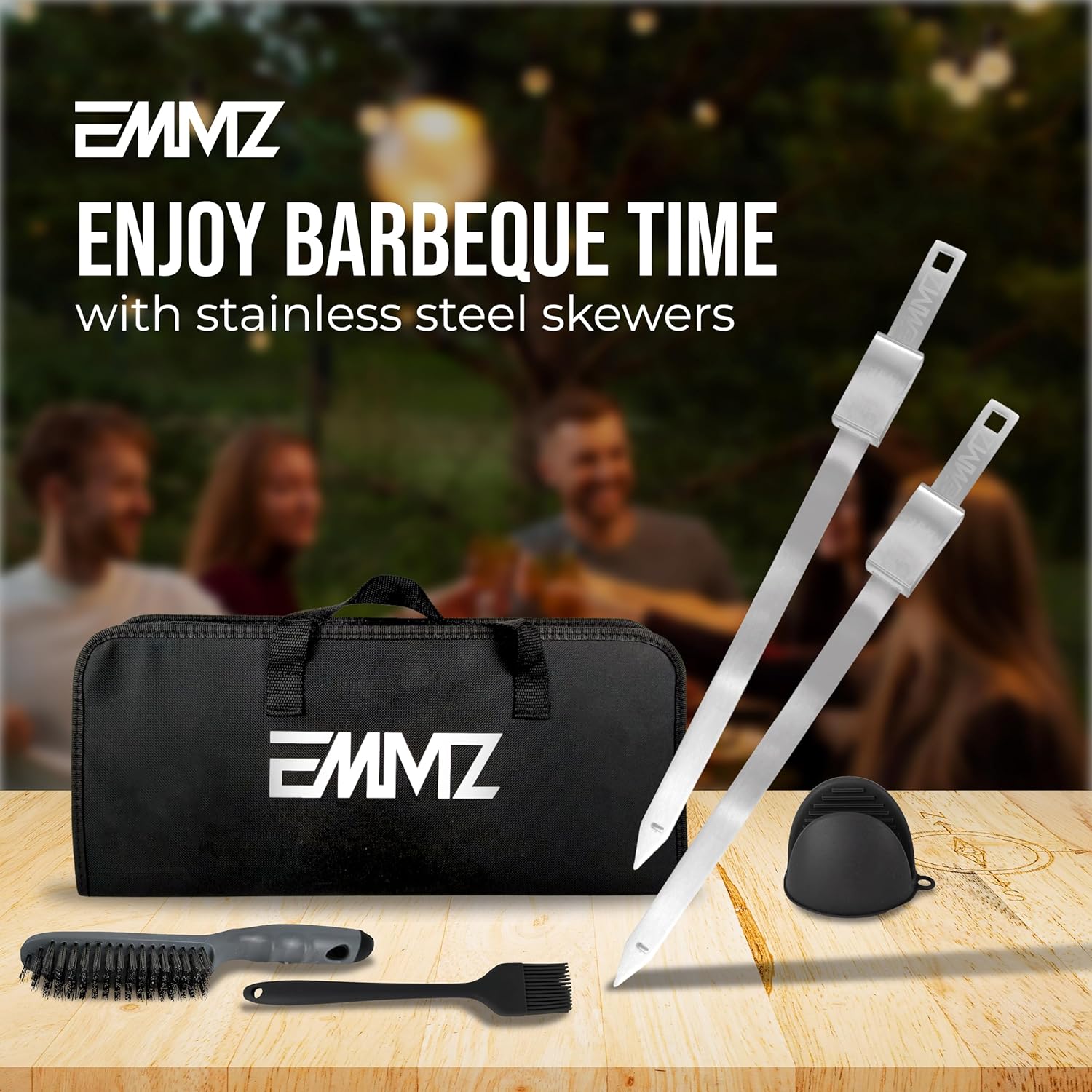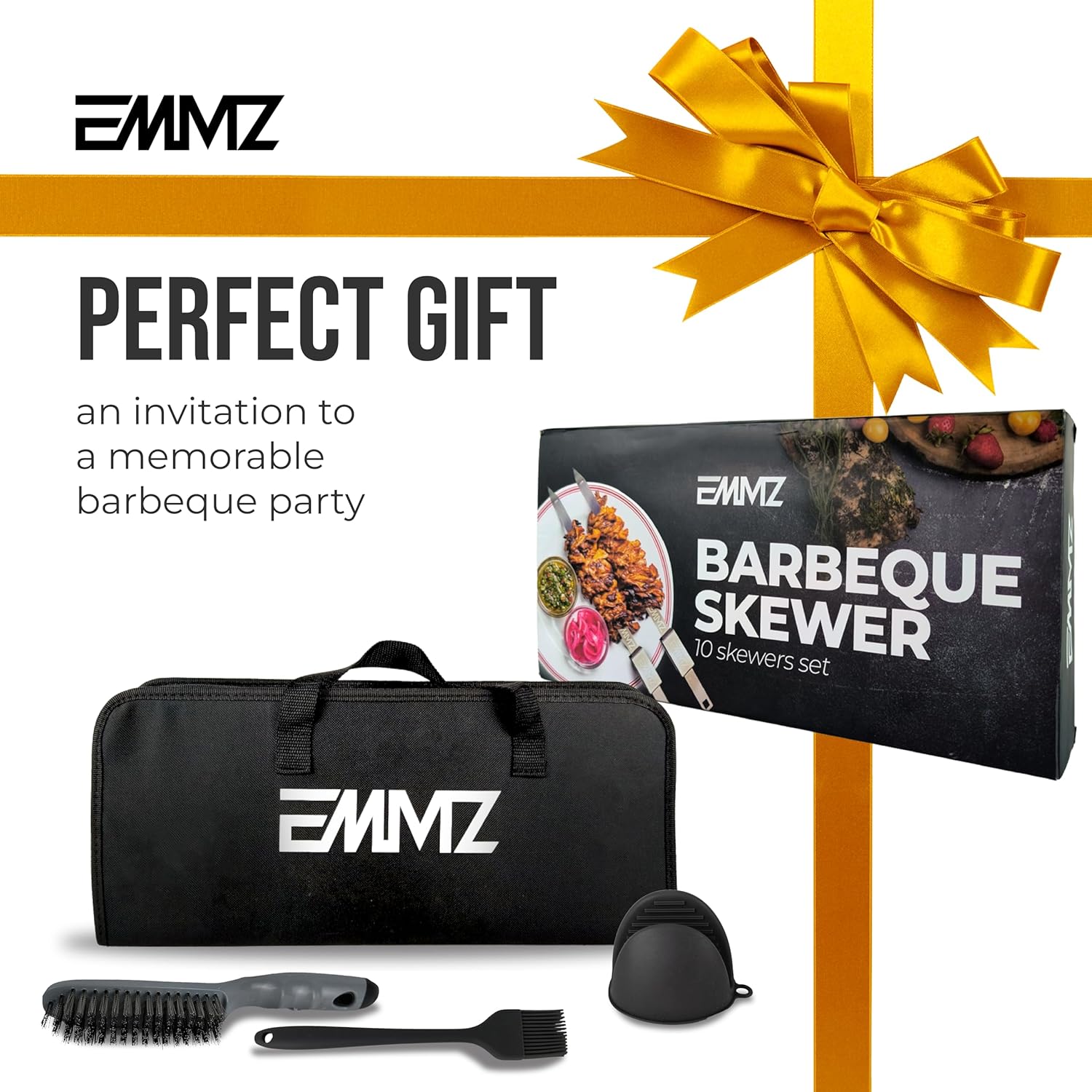 - Enhance your grilling experience with our bbq grill skewer set, bundled with essential grilling accessories including an oil brush, grill cleaning brush, and heat-resistant gloves. Perfect for any occasion, it makes an ideal gift, especially for Christmas!