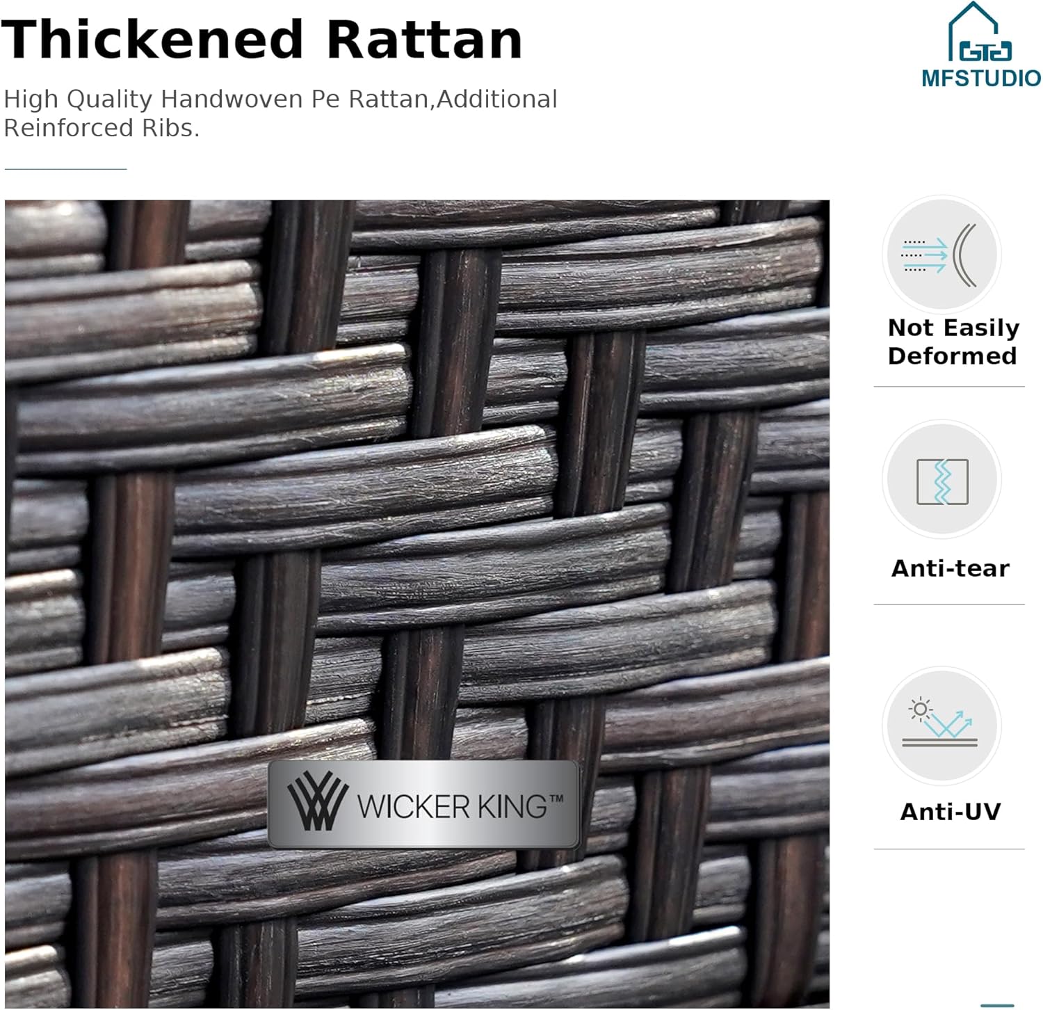 - Comfortable Cushions: MFSTUDIO 5.5" Thicker cushions have Cushion-Pro Technology, which have excellent water, oil and stain resistance. All the cushions are filled with high-density sponge. Each cushion cover features Velcro and zipper, which help secure the cushion in place to prevent slipping, and make the cover easy to remove and wash