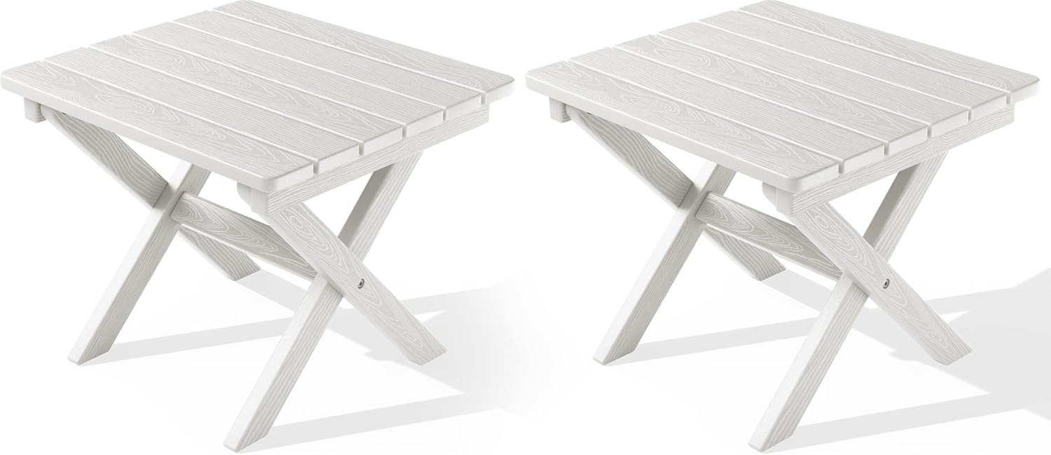 SERWALL Folding Outdoor Side Table Set of 2, Portable Adirondack Side Table, White