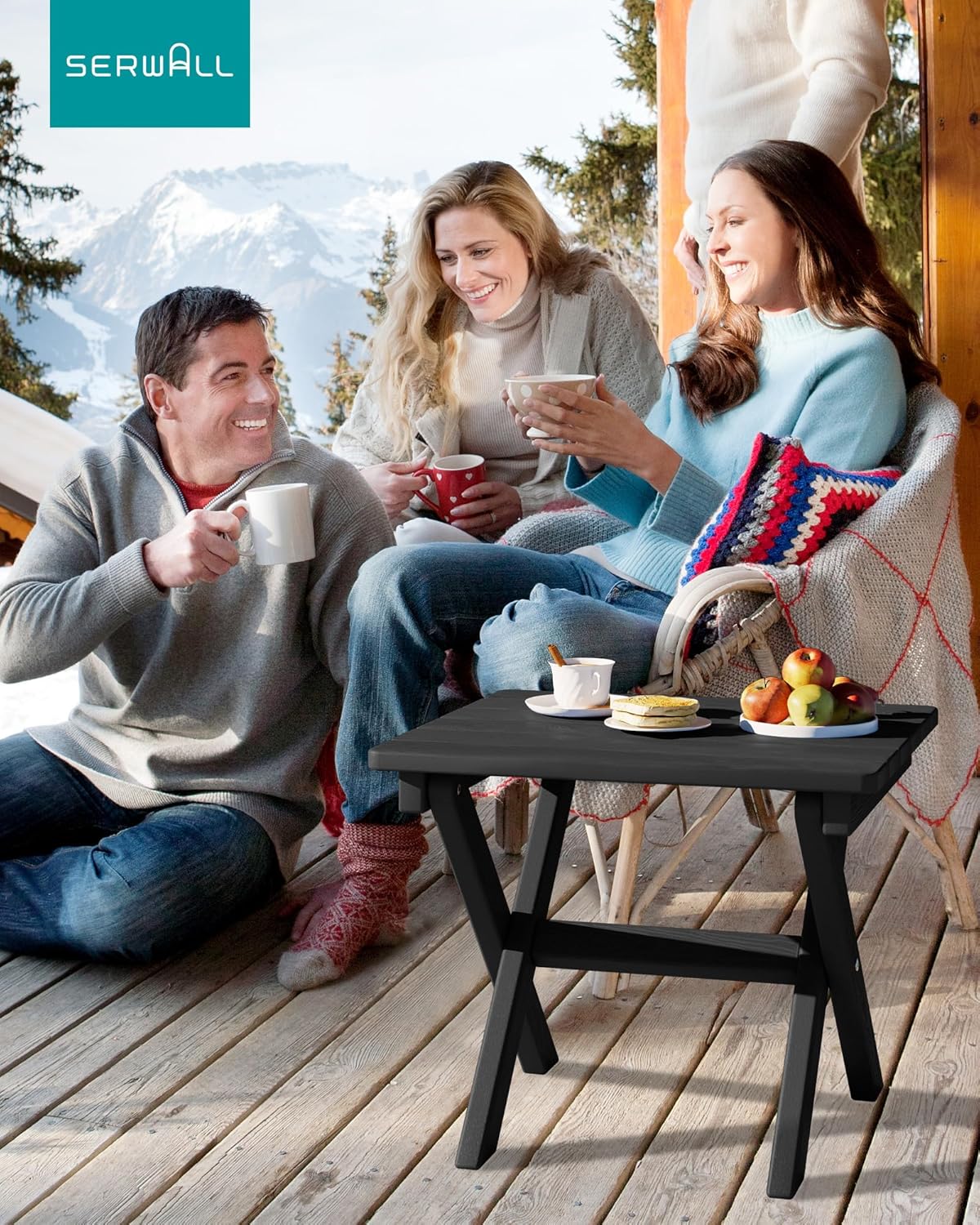SERWALL Folding Outdoor Side Table, HDPE Adirondack Side Table, Portable Outdoor End Table, Black