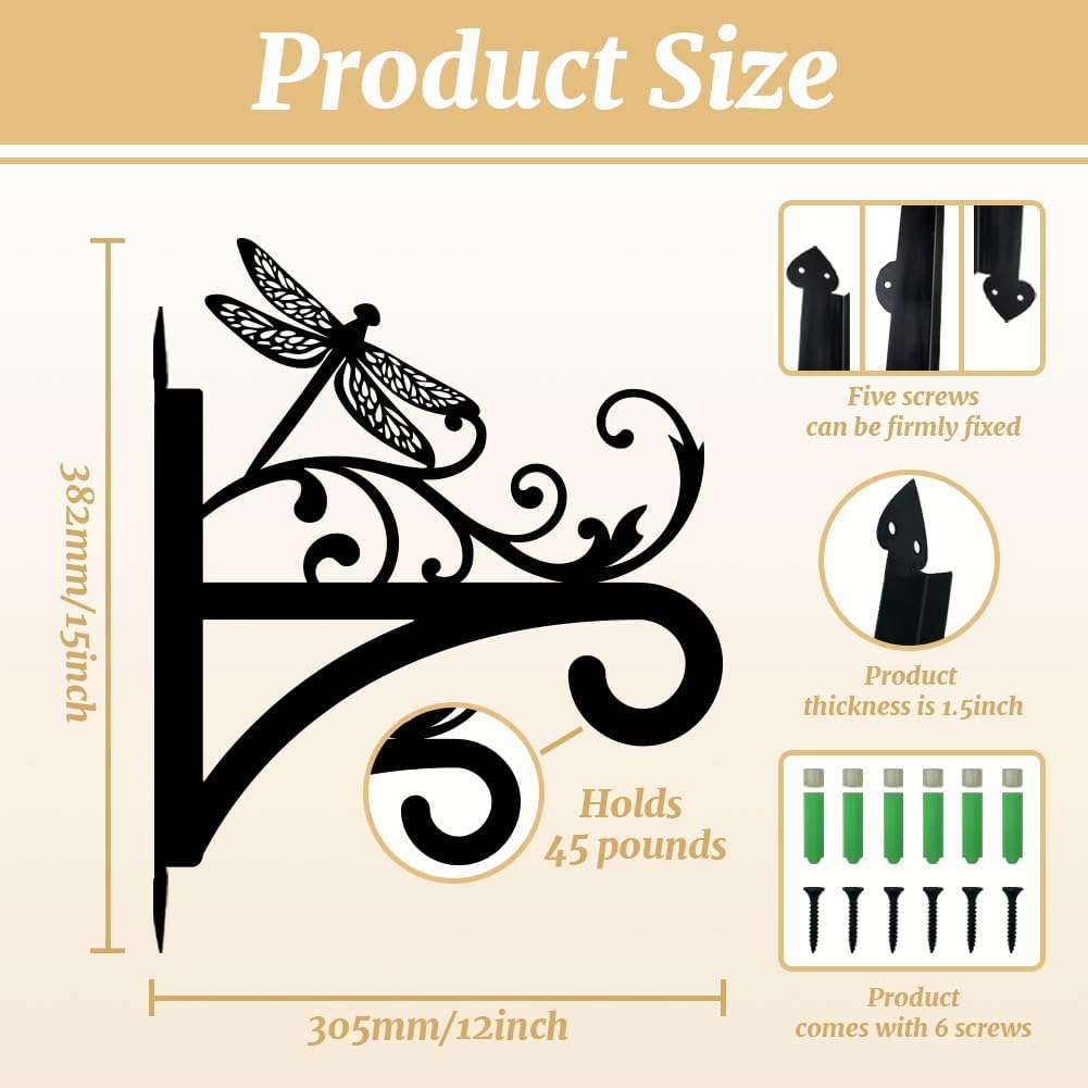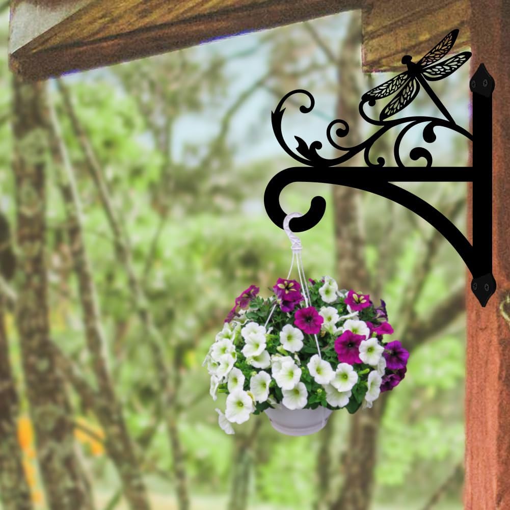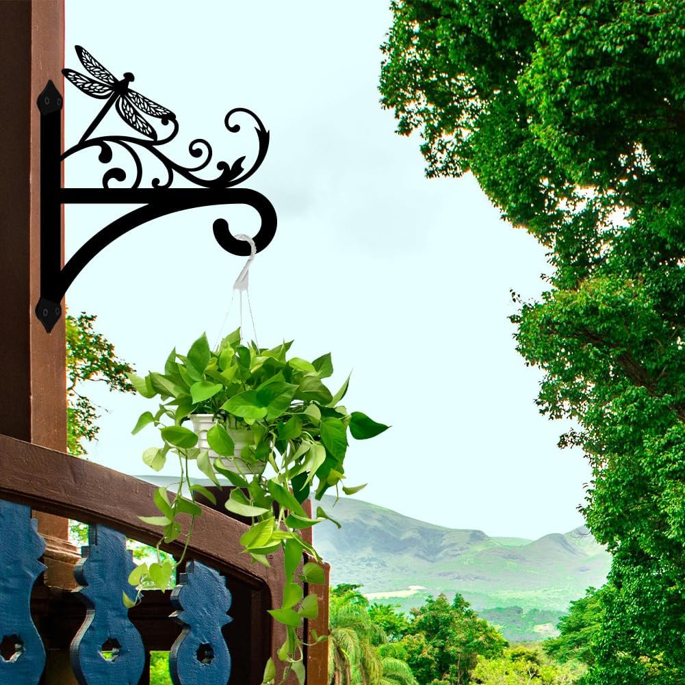 peacoblue Iron Plant Hangers Hooks for Outdoor Indoor Hanging Plants Flower Fern Pots Lantern Bird Feeder, 12"x15" Weather Resistant Metal Wall Holder for Porch Garden Farmhouse(Vintage Dragonfly)